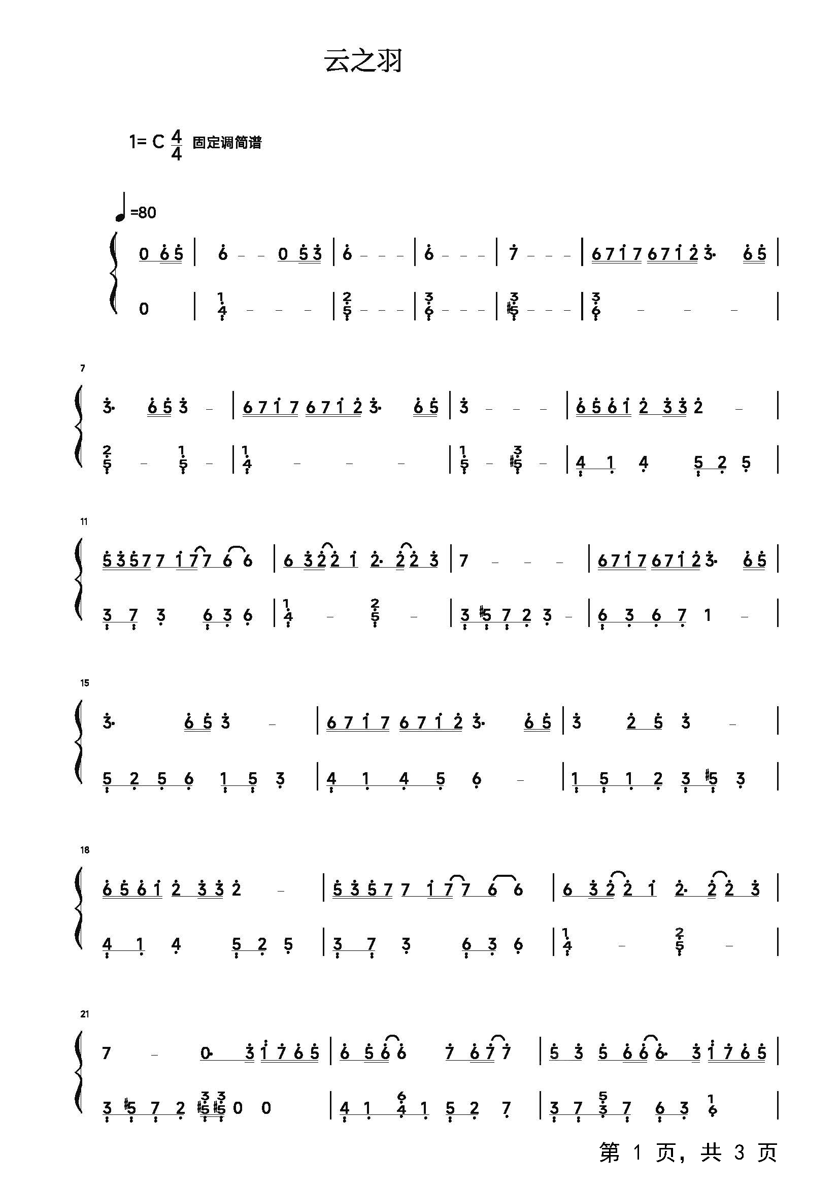 作品分类:钢琴简谱