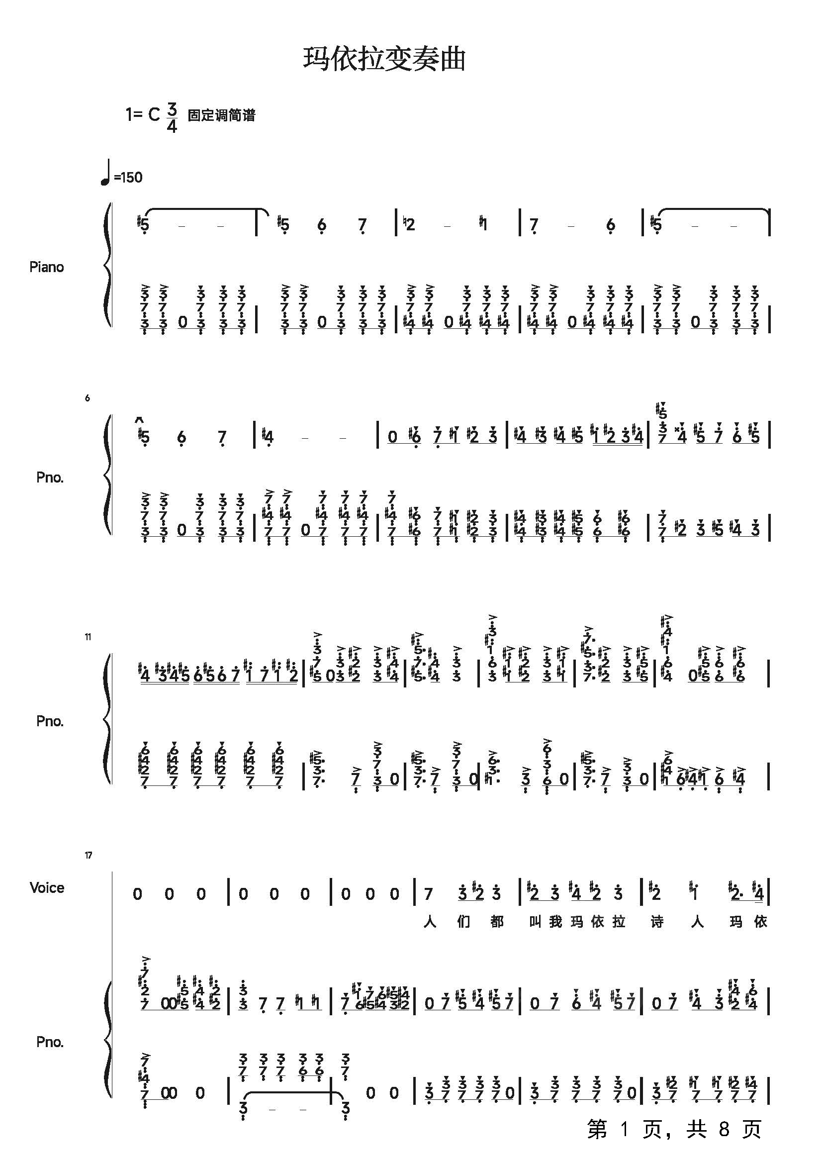 作品分类:钢琴简谱