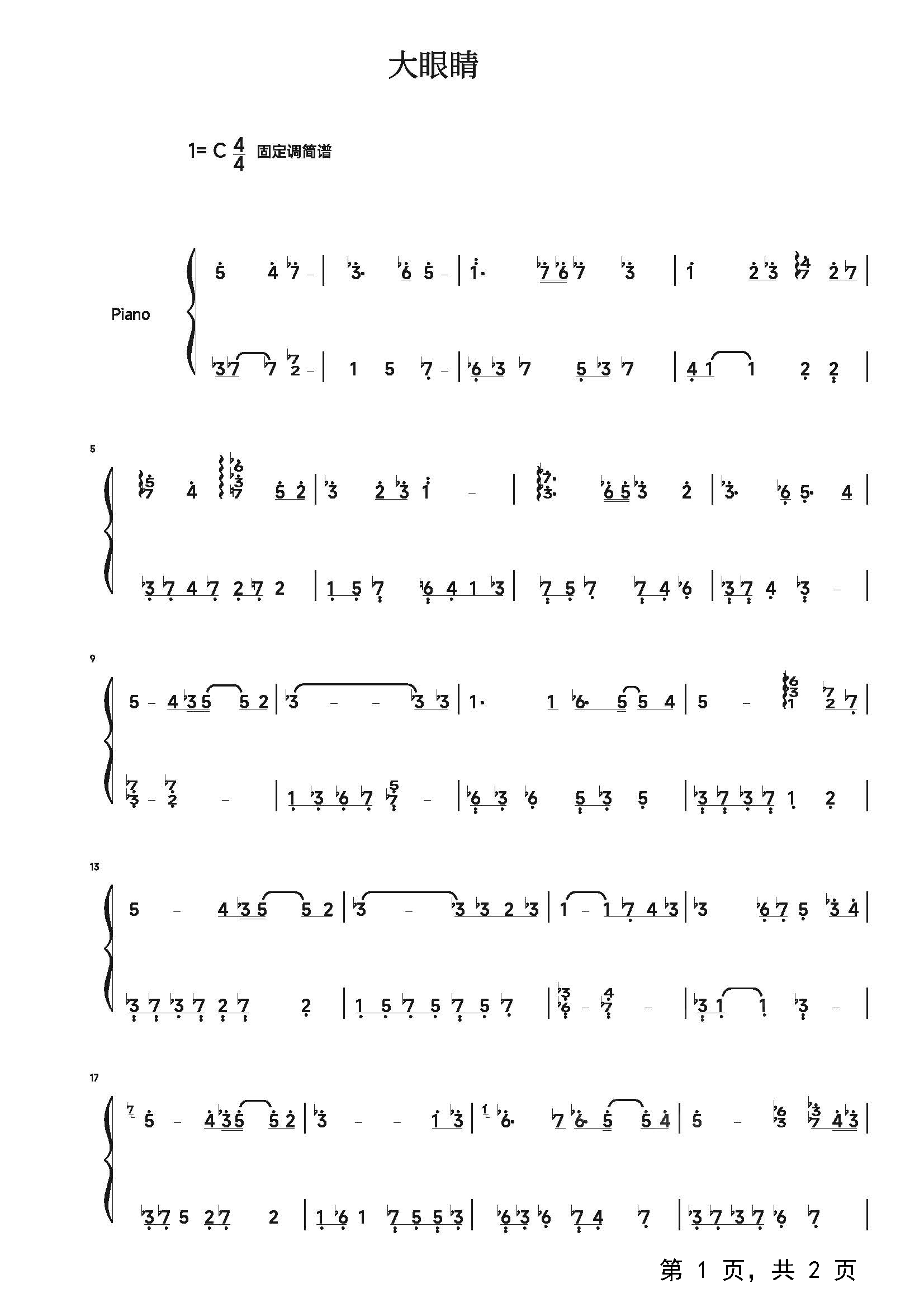 作品分类:钢琴简谱