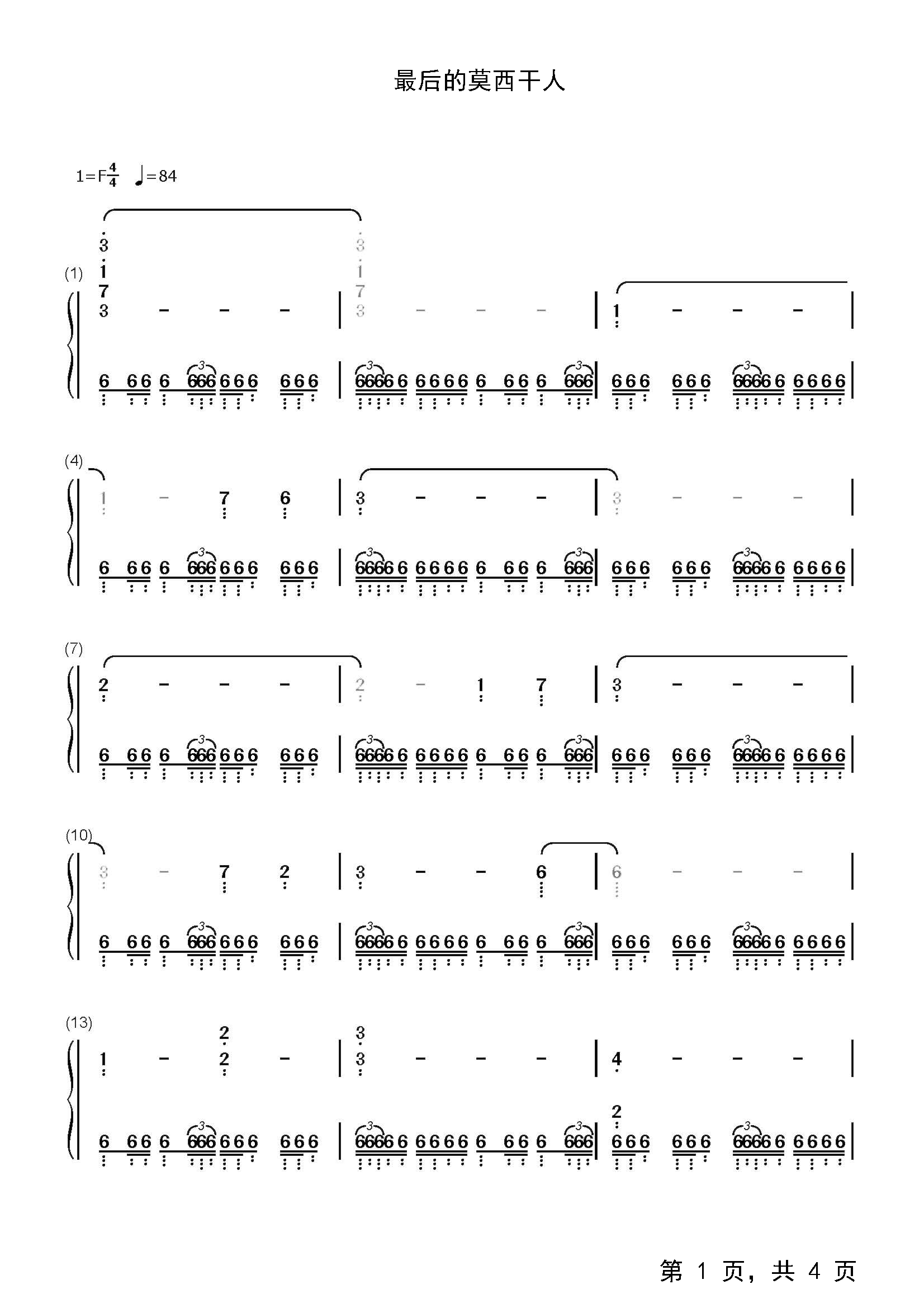 作品分类:钢琴简谱