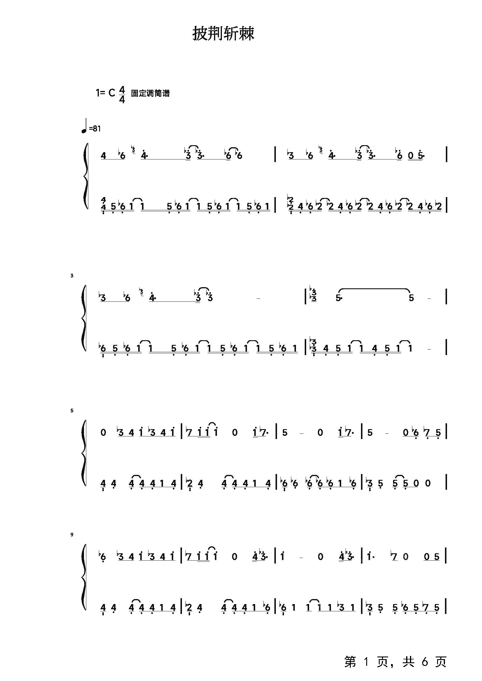 作品曲调:C调
