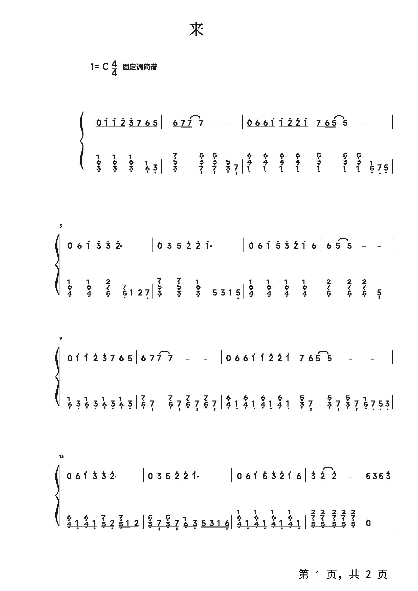 作品曲调:C调