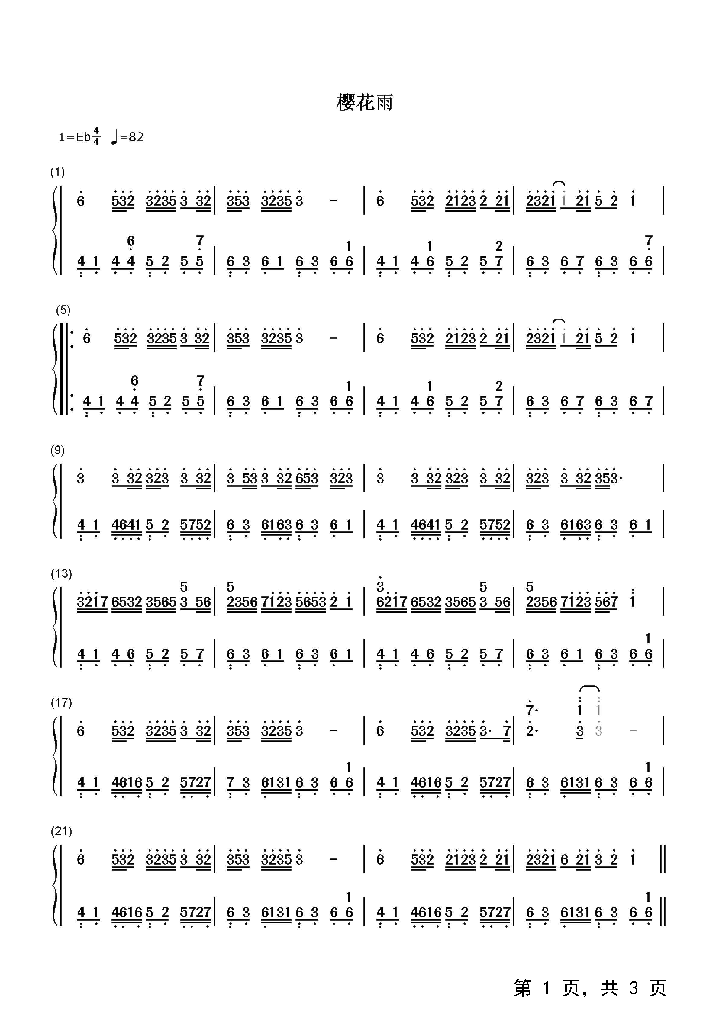 作品分类:钢琴简谱