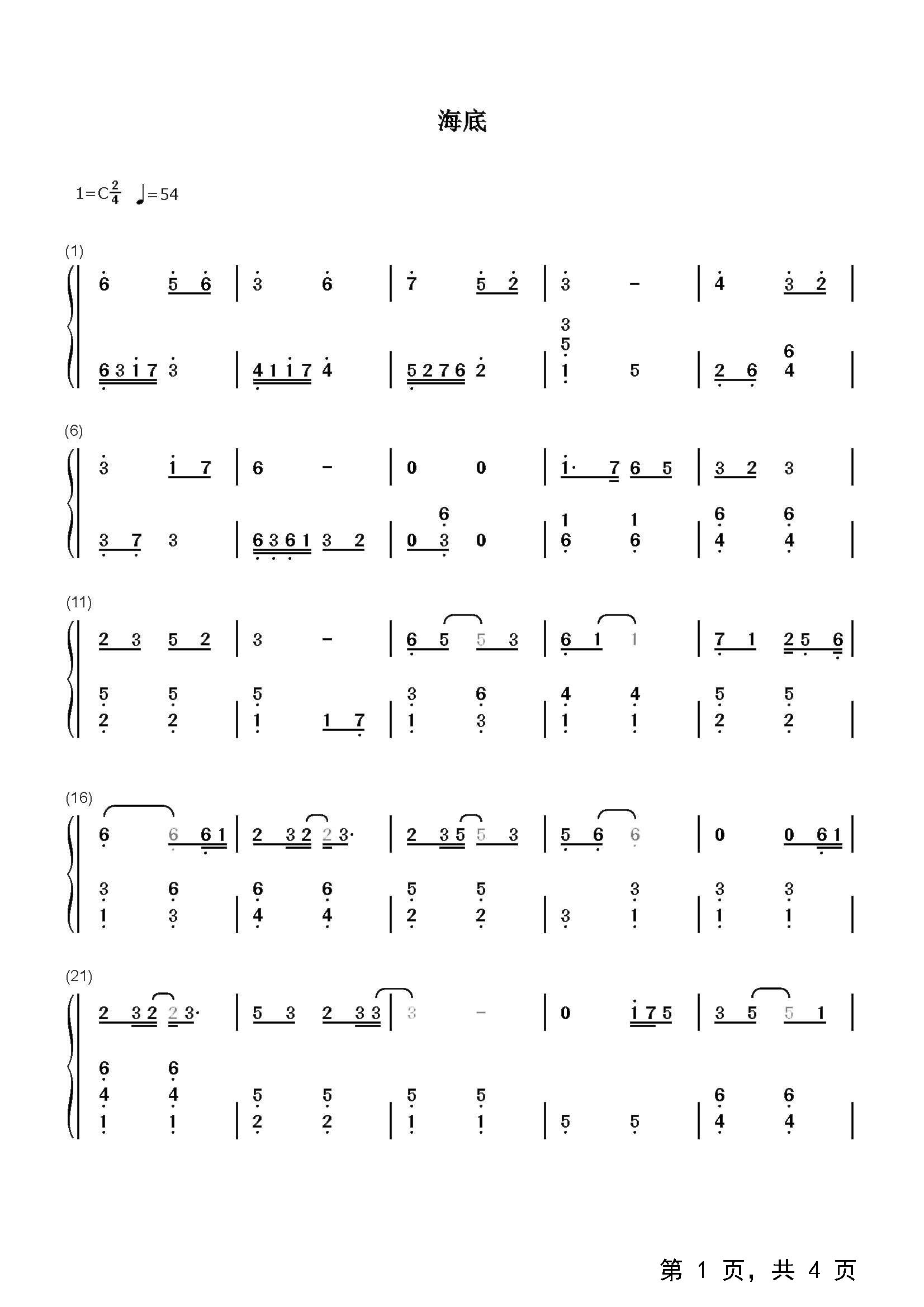作品分类:钢琴简谱
