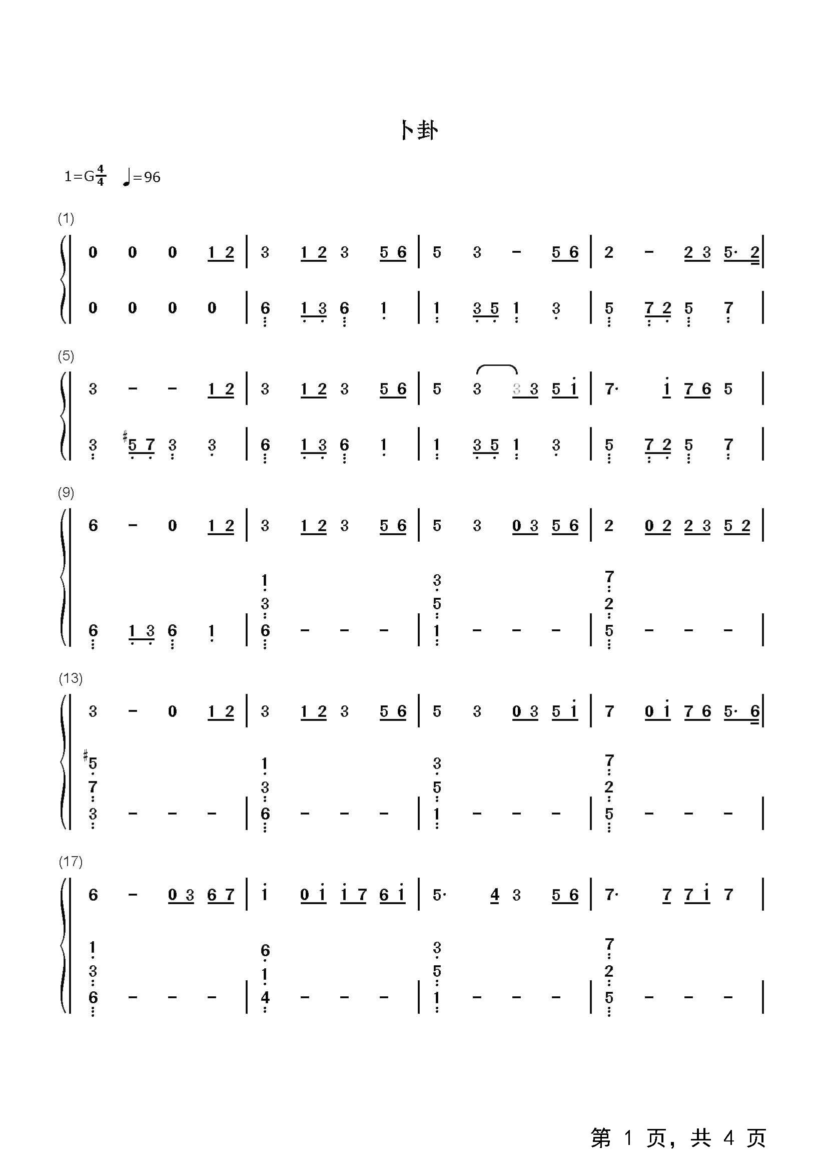 作品分类:钢琴简谱