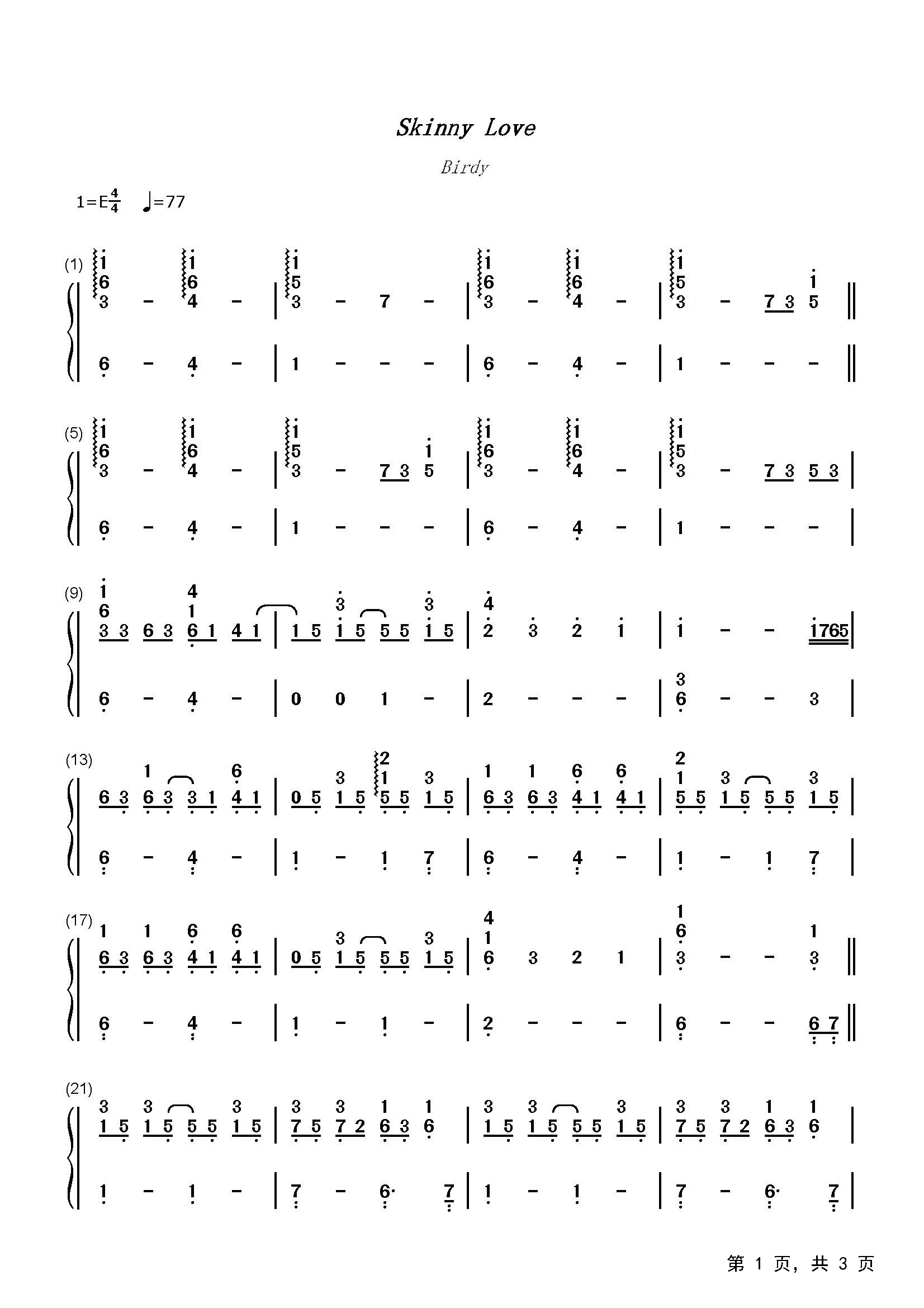 作品分类:流行钢琴简谱