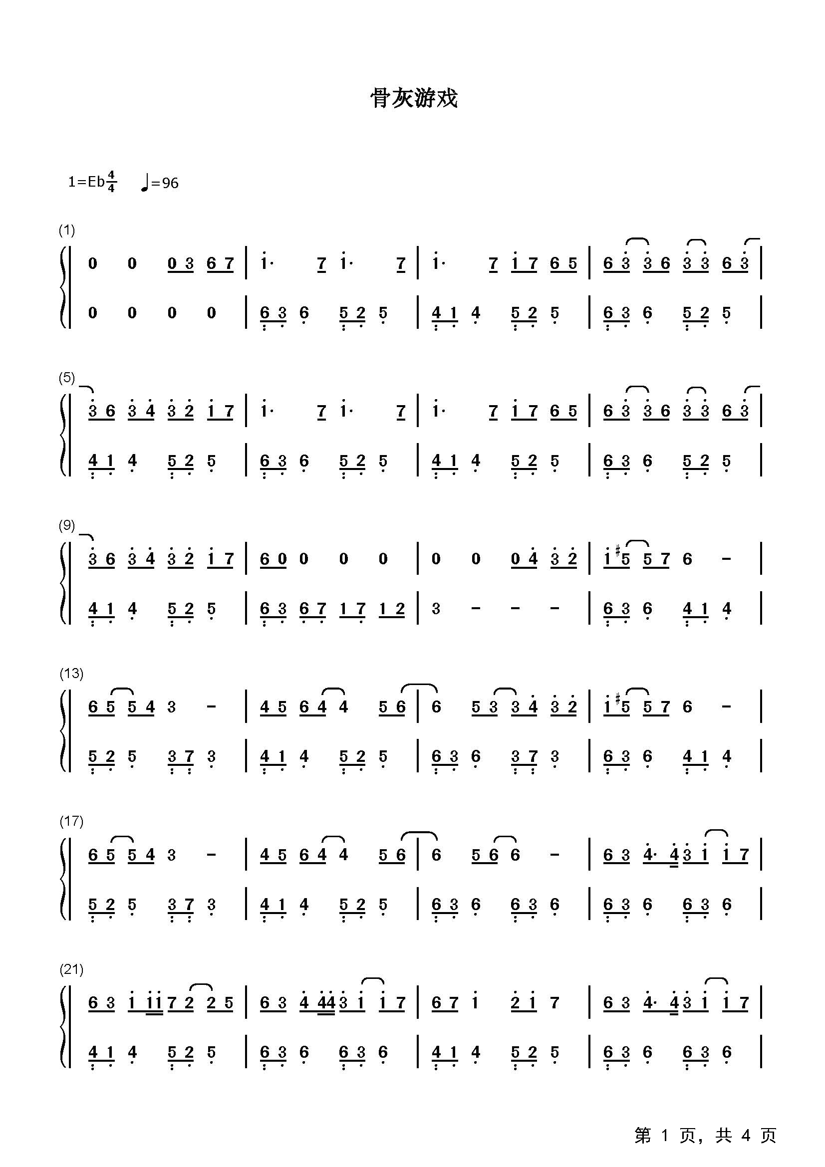 作品分类:流行钢琴简谱
