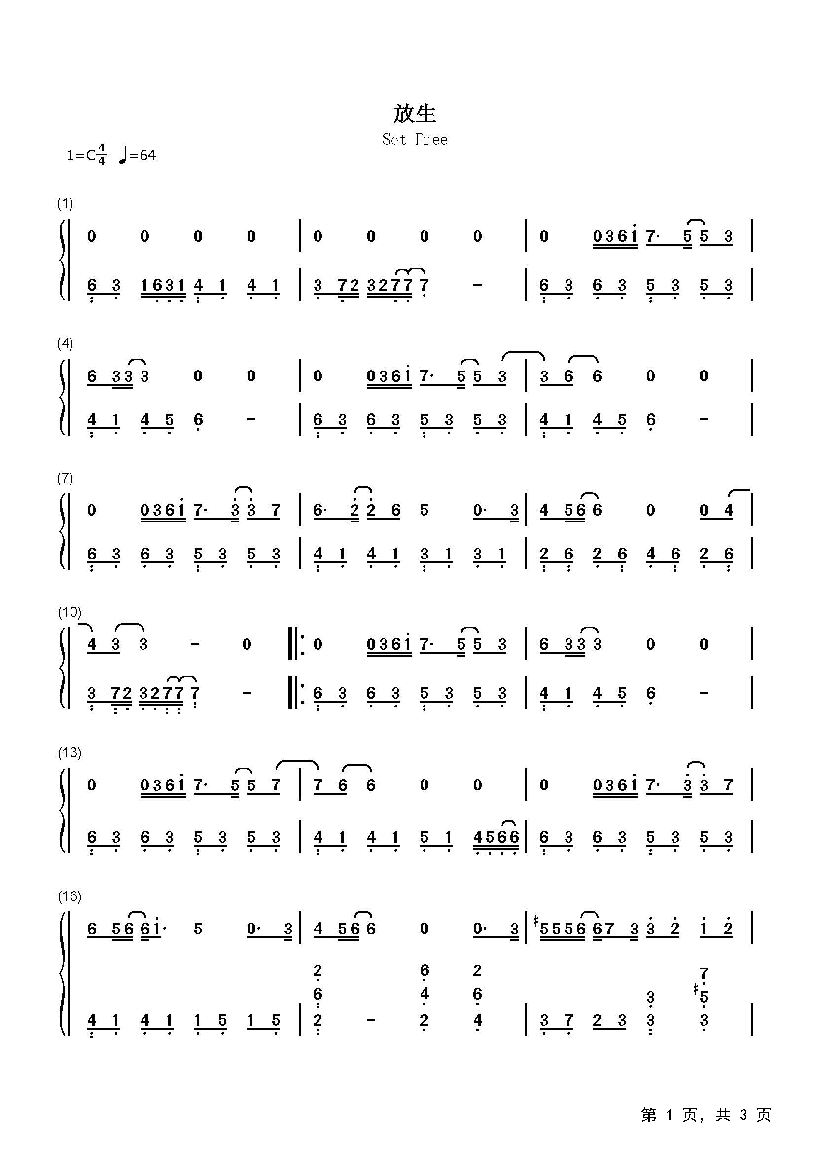 作品曲调:C调