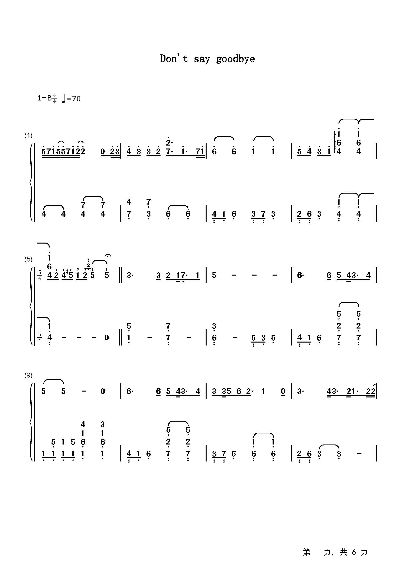作品分类:流行钢琴简谱
