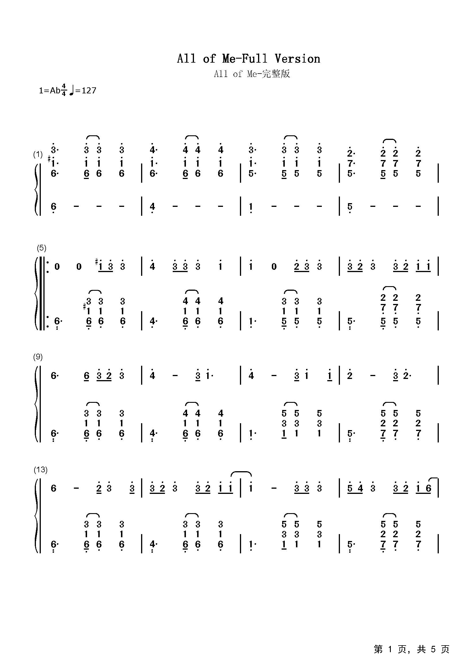 《All of Me》是美国新灵魂乐歌手John Legend专辑《Love in the Future (2013)》的一首单曲。是John Legend为新婚妻子而写的歌。John Legend,(原名John Stephens,1978年12月28日-)是位夺得九次格莱美奖的R&B唱作人和钢琴家。首张专辑《Get Lifted》在2004年发行,获得白金销量的佳绩。其专辑是与著名制作人和说唱(rap)歌手肯伊·威斯特(Kanye West)和Snoop Dogg合作。正因为首张专辑的成功,他事业上得到更多机会与知名的歌手合作。