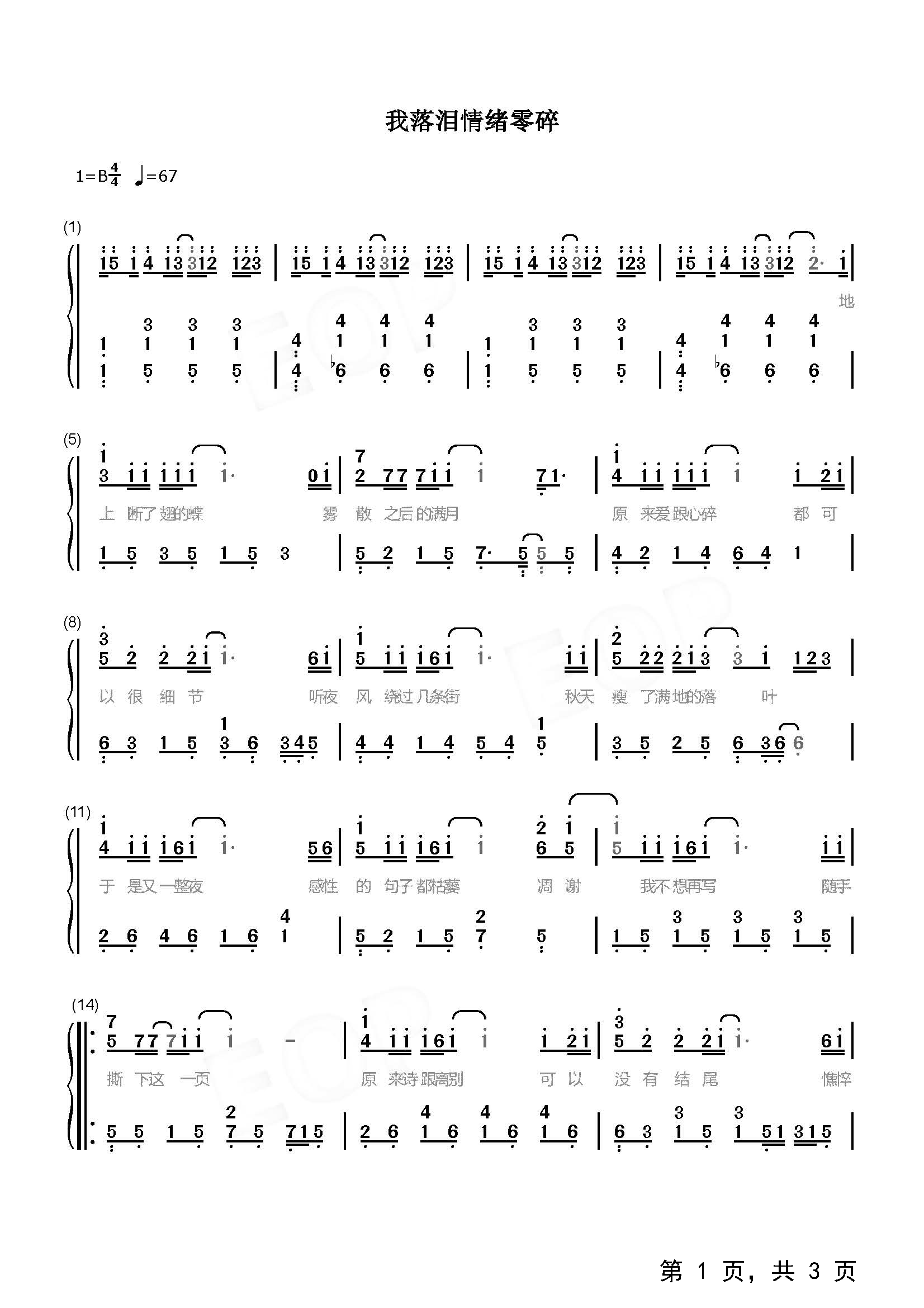 作品分类:流行钢琴简谱