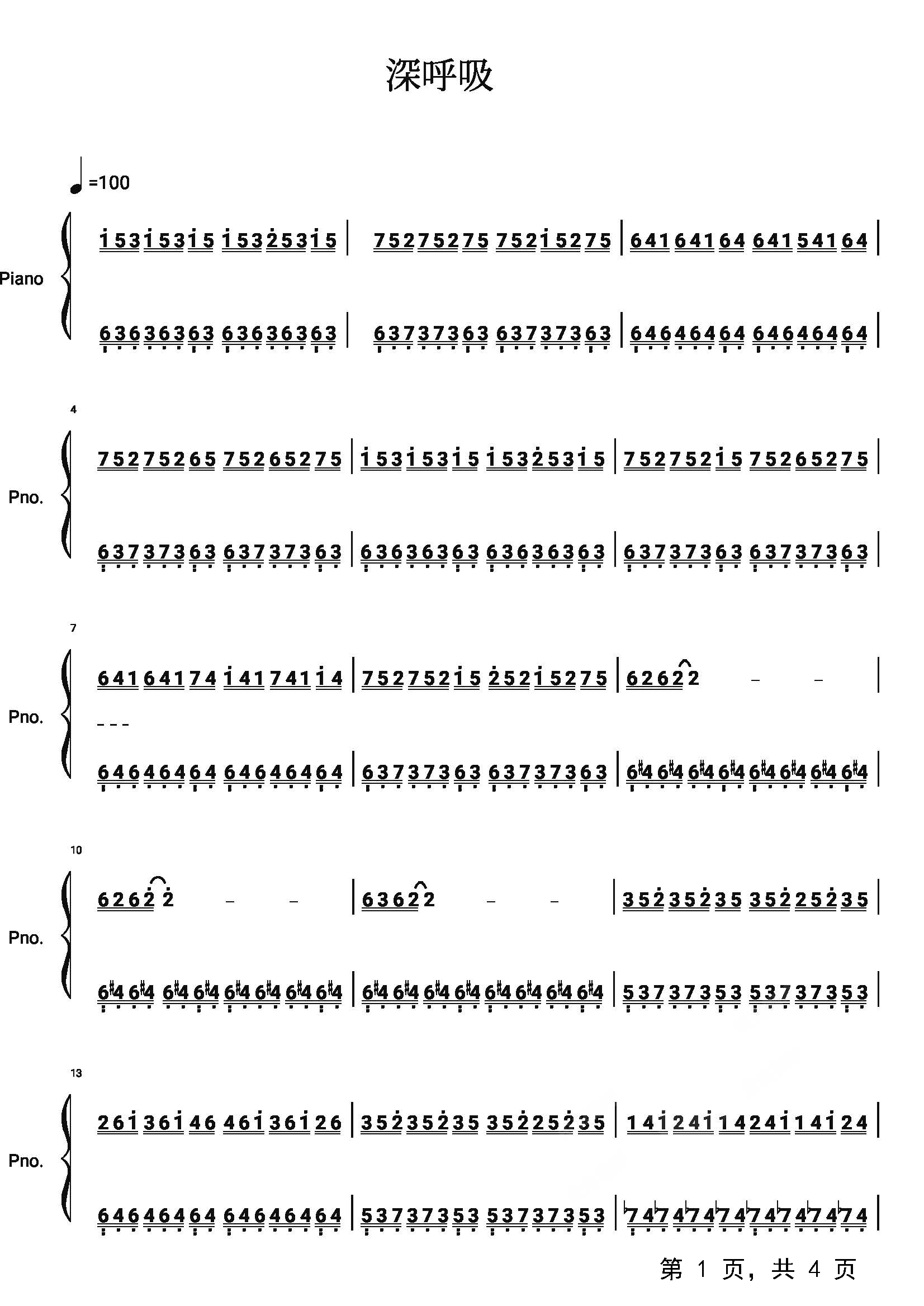 作品分类:流行钢琴简谱