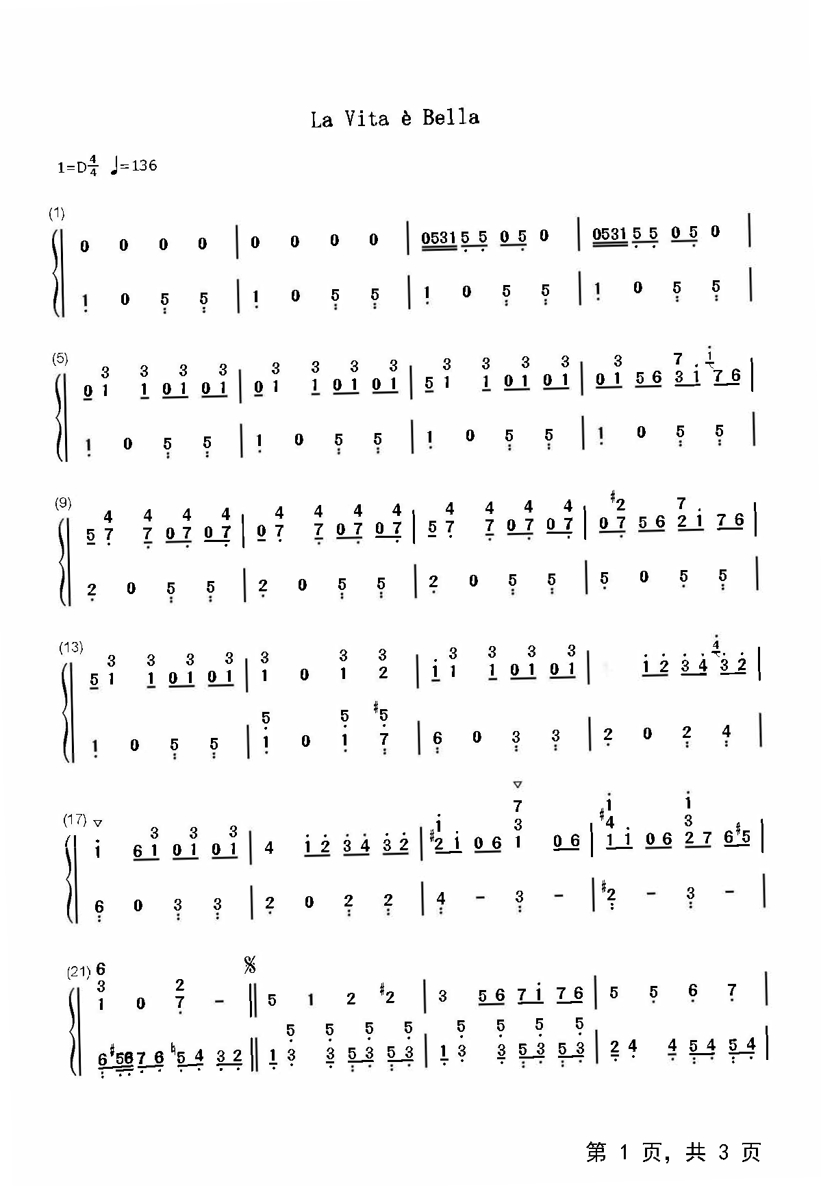 《La Vita è Bella》是电影《美丽人生》的原声音乐,由古典音乐家Nicola Piovani创作。《美丽人生》(意大利语:La vita è bella,意为“人生是美好的”),1997年电影,由导演罗伯托•贝尼尼自编自演,荣获第71届奥斯卡最佳男主角奖和最佳外国语影片奖、欧洲电影奖最佳影片及多个国际大奖。电影讲述意大利一对犹太父子被送进纳粹集中营,父亲盖多(Guido Orefice,导演罗伯托•贝尼尼饰)不忍年仅五岁的儿子饱受惊恐,利用自己丰富的想像力扯谎说他们正身处一个游戏当中,必须接受集中营中种种规矩以换得分数赢取最后大奖。影片笑中有泪,将一个大时代小人物的故事,转化为一个扣人心弦的悲喜剧。