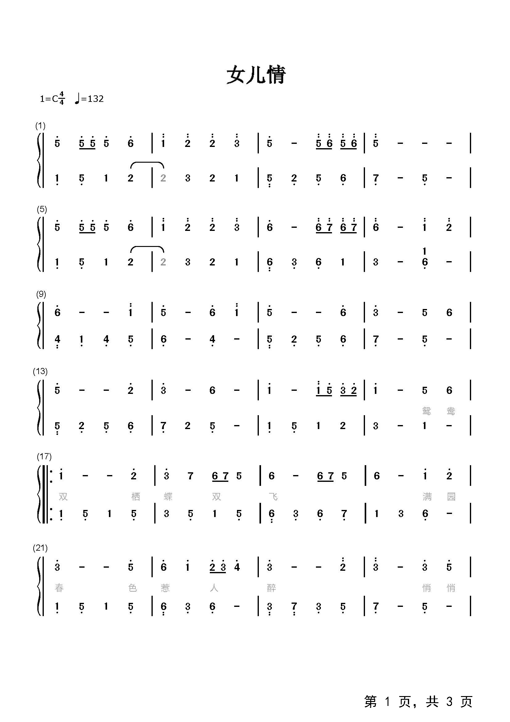 作品曲调:C调
