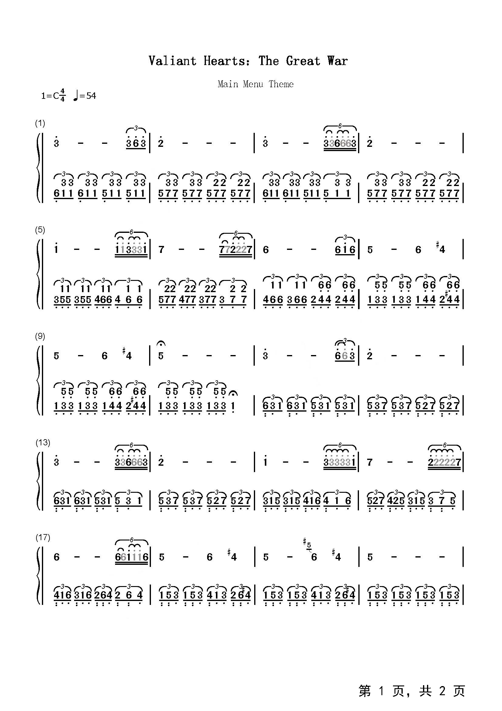《勇敢的心:世界大战主题曲》(Valiant Hearts The Great War Main Menu Theme)出自游戏《勇敢的心:世界大战》,Ian Livingstone作曲。 《勇敢的心:世界大战》(Valiant Hearts:The Great War)是由Ubisoft Montpellier开发制作的一款动作冒险类反战题材游戏,于2014年06月25日发行。2018年11月8日登陆NS。游戏讲述是一个跨越命运的故事,一个在四分五裂世界里的破碎的爱。在《勇敢的心》,所有人物都会在游戏过程中产生千丝万缕的联系,友情、爱情、牺牲和悲剧会降临到每个人的身上,但他们互相帮助,以保持对人类恐怖战争的反抗。
