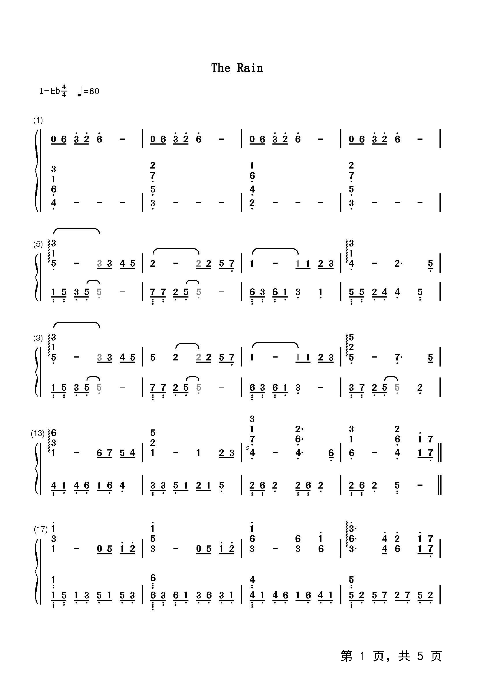 作品分类:流行钢琴简谱
