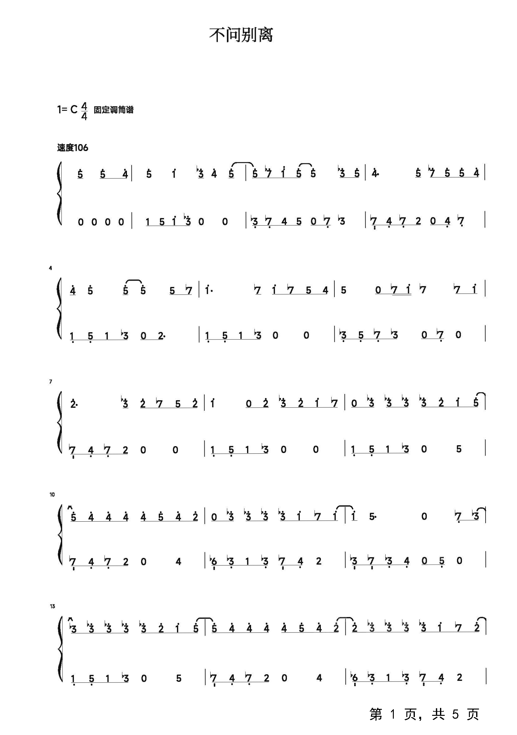 作品分类:流行钢琴简谱