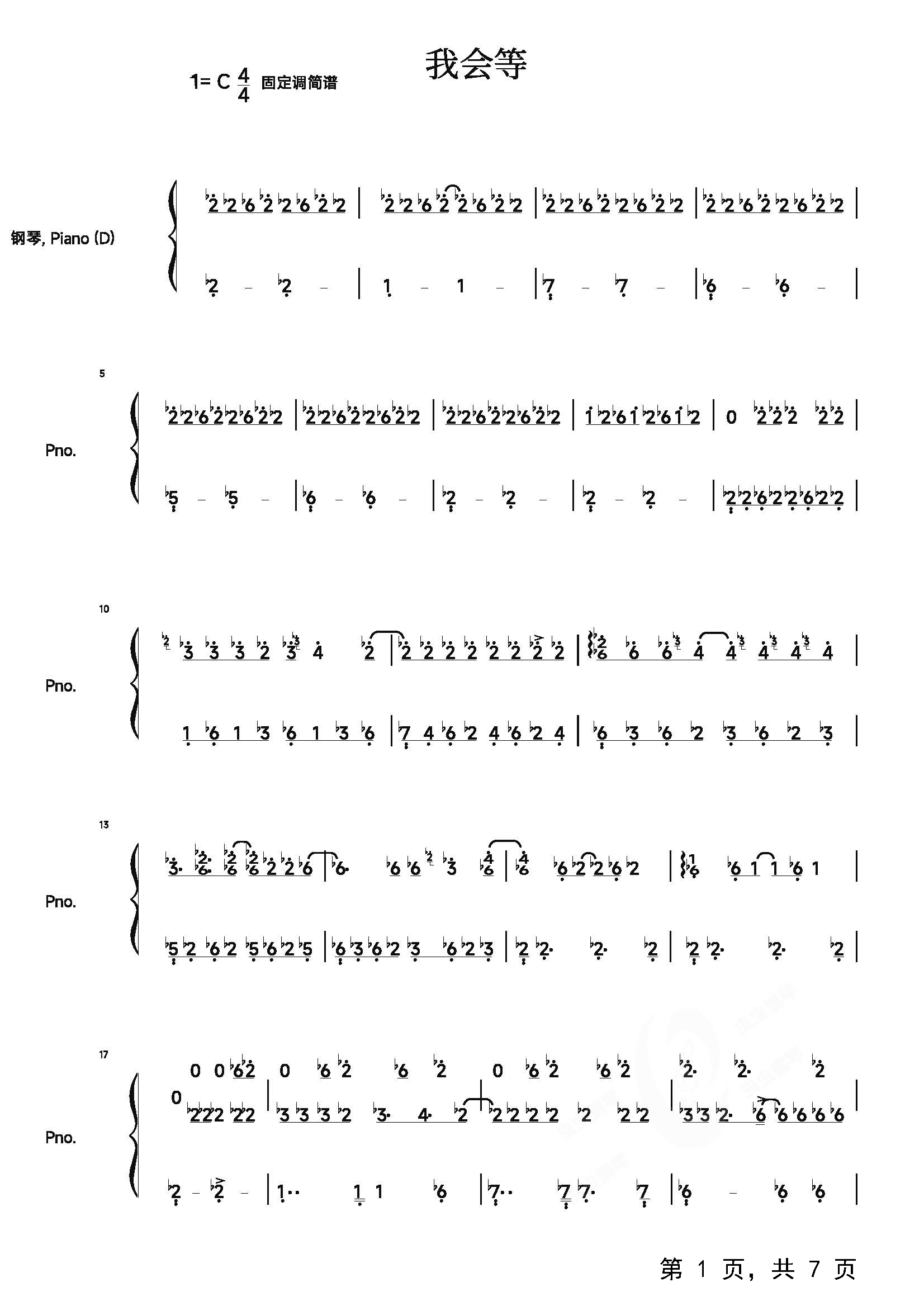 作品分类:流行钢琴简谱