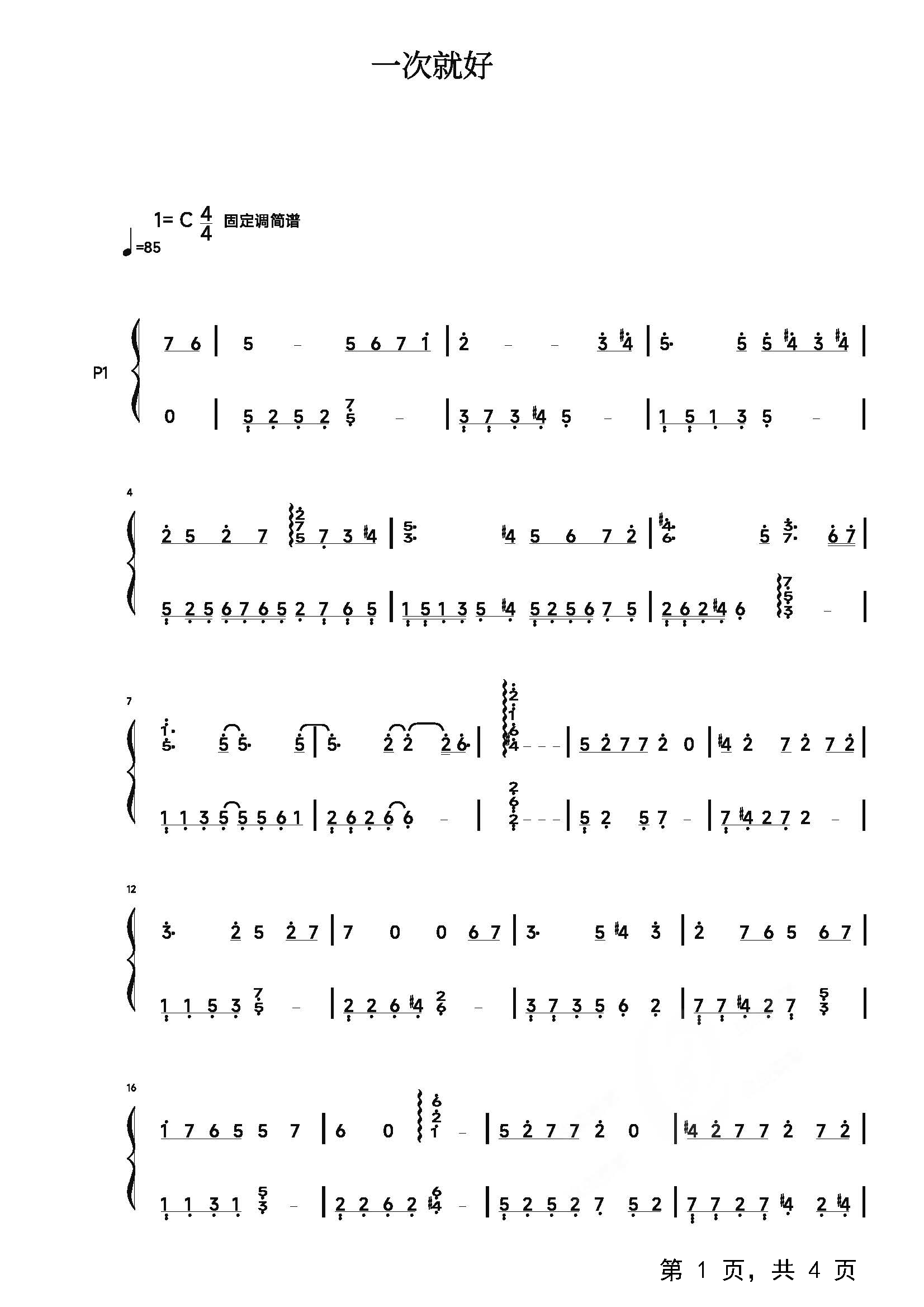 作品分类:流行钢琴简谱