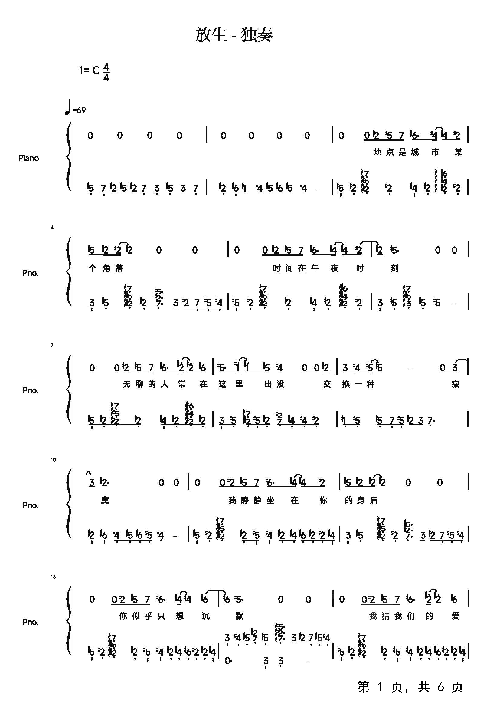 作品分类:流行钢琴简谱