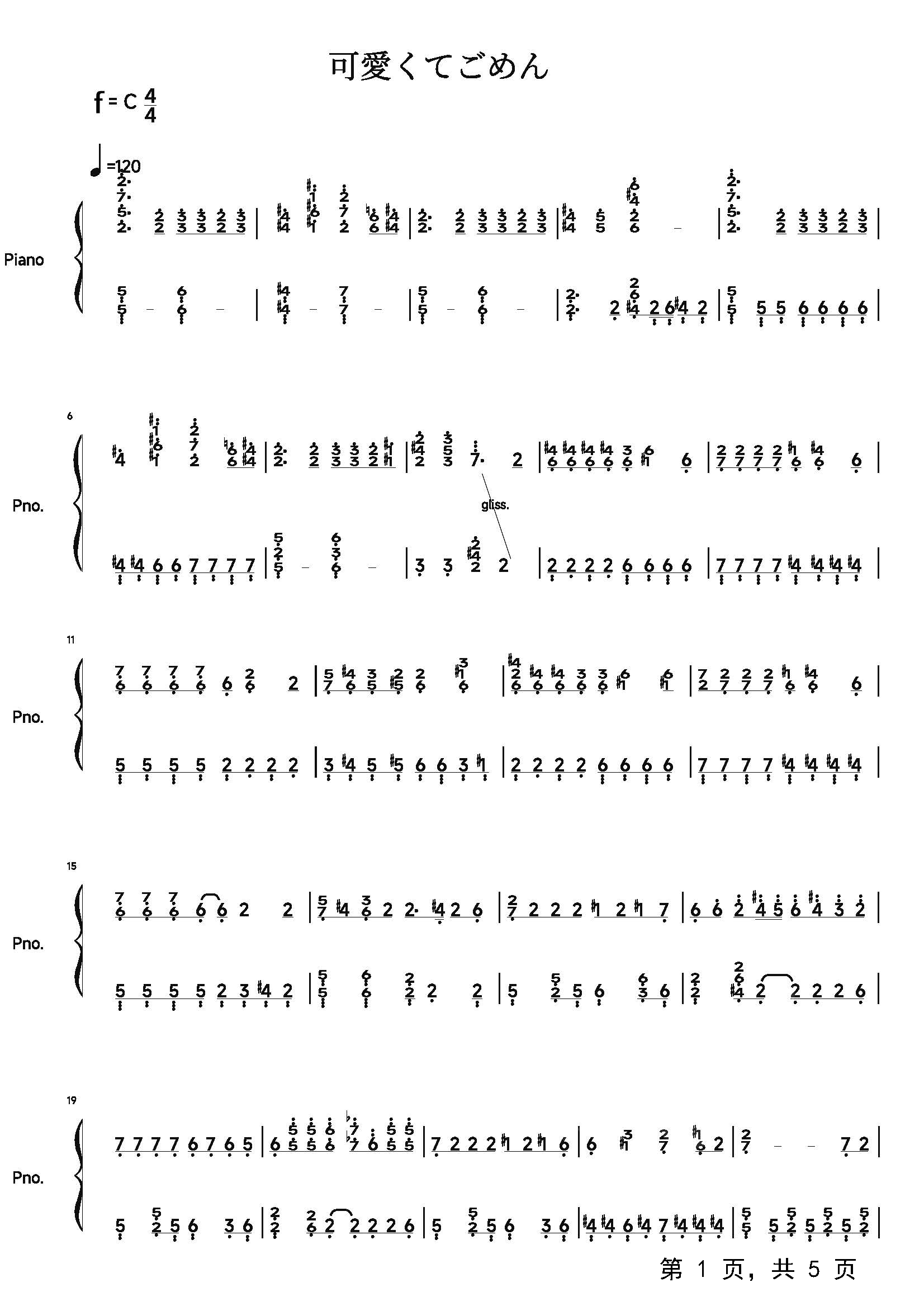 作品分类:流行钢琴简谱