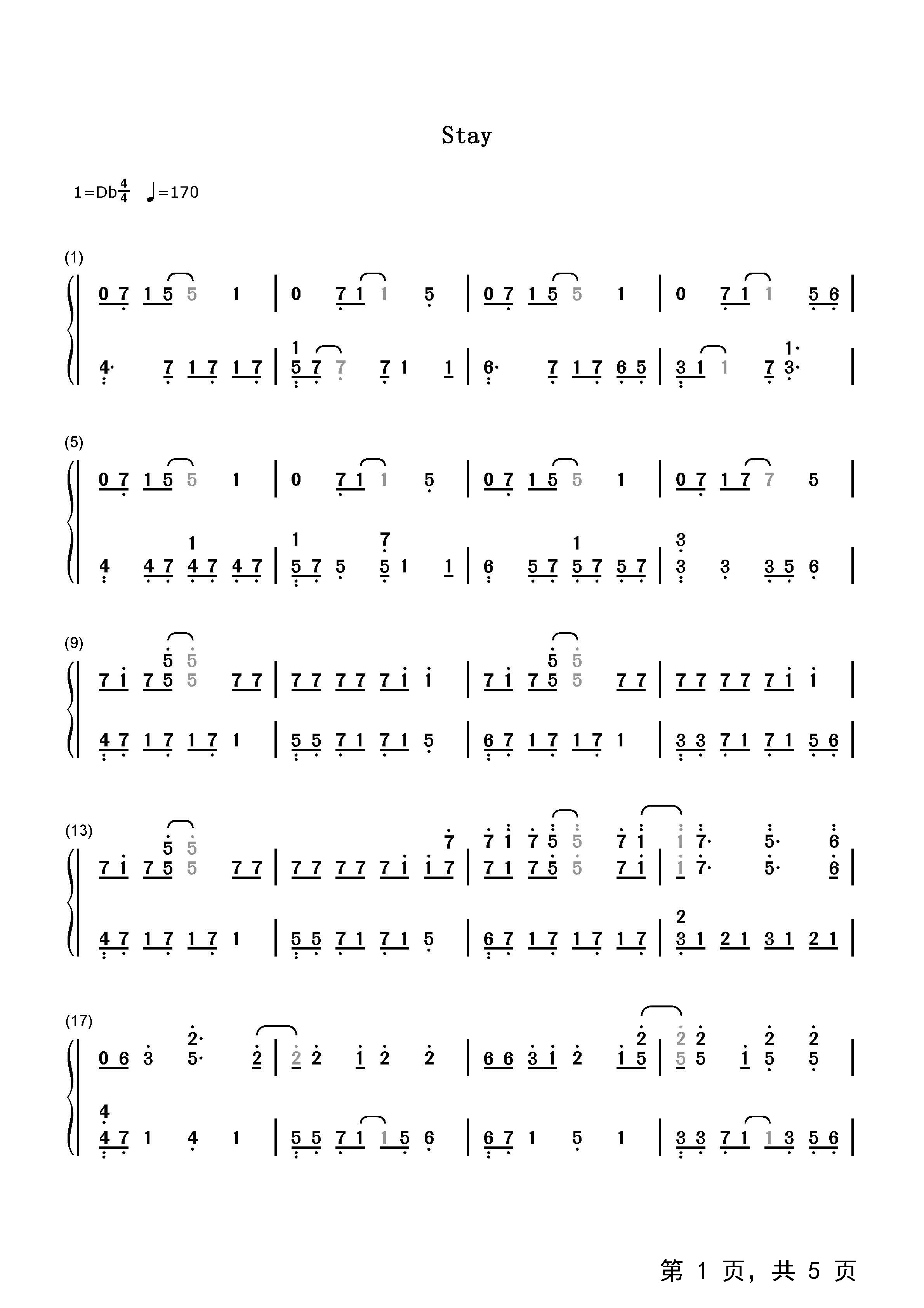 作品分类:流行钢琴简谱