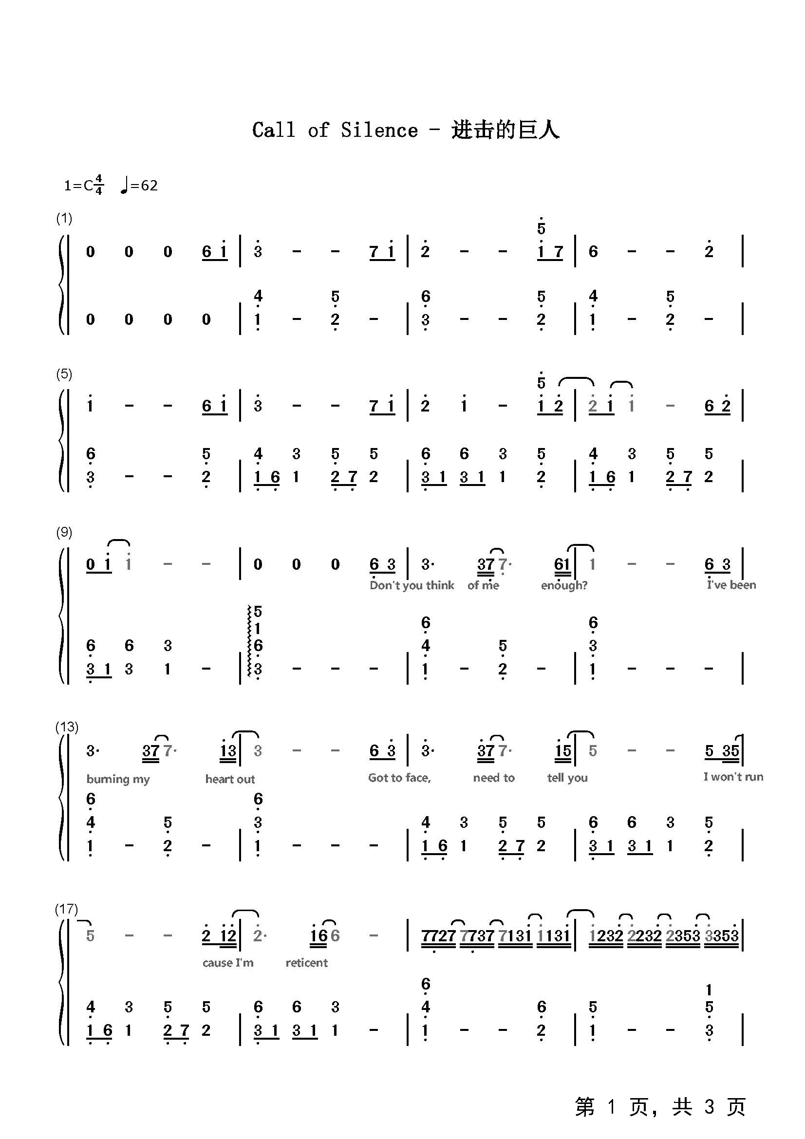 作品曲调:C调