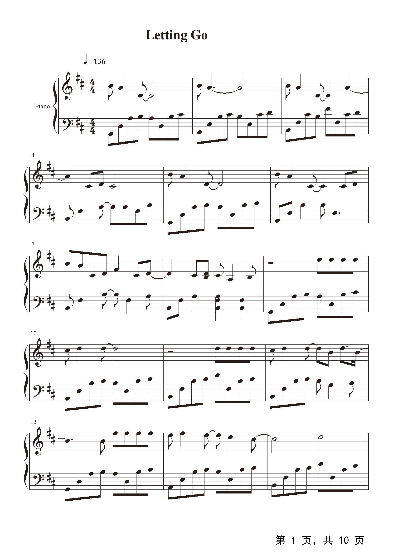 Letting Go钢琴谱-蔡健雅-D调-流行钢琴简谱