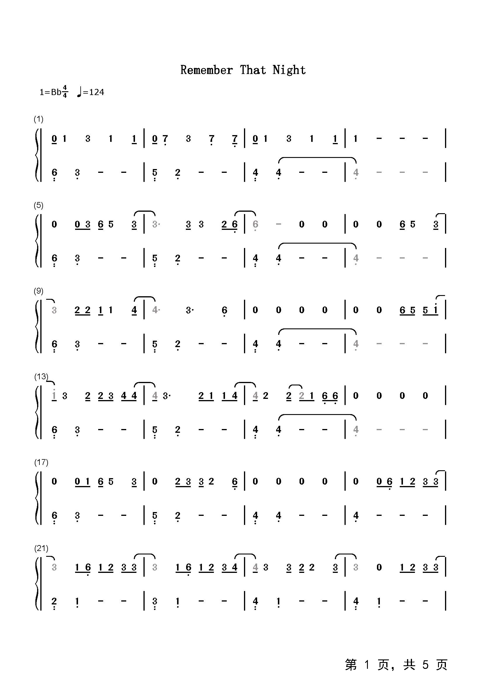 作品分类:流行钢琴简谱