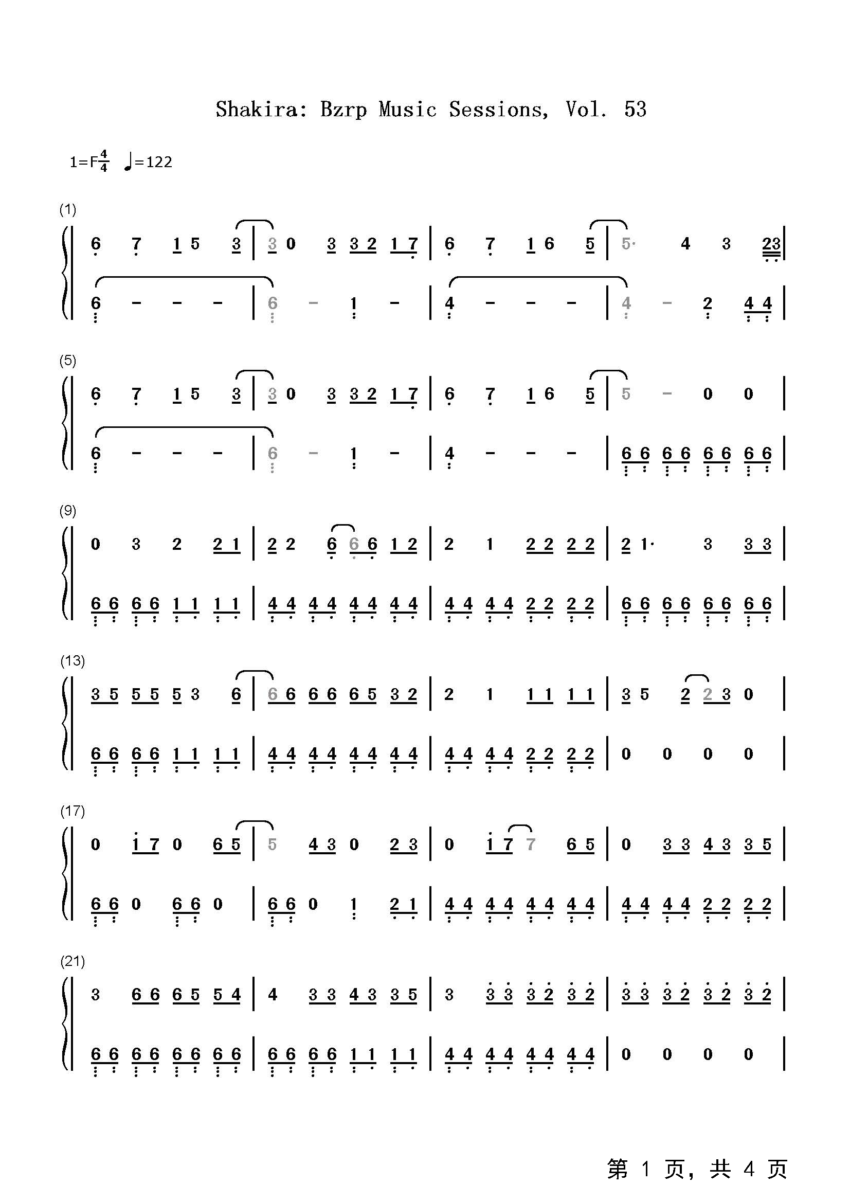 作品归属:Shakira Bzrp Music Sessions Vol 53钢琴谱