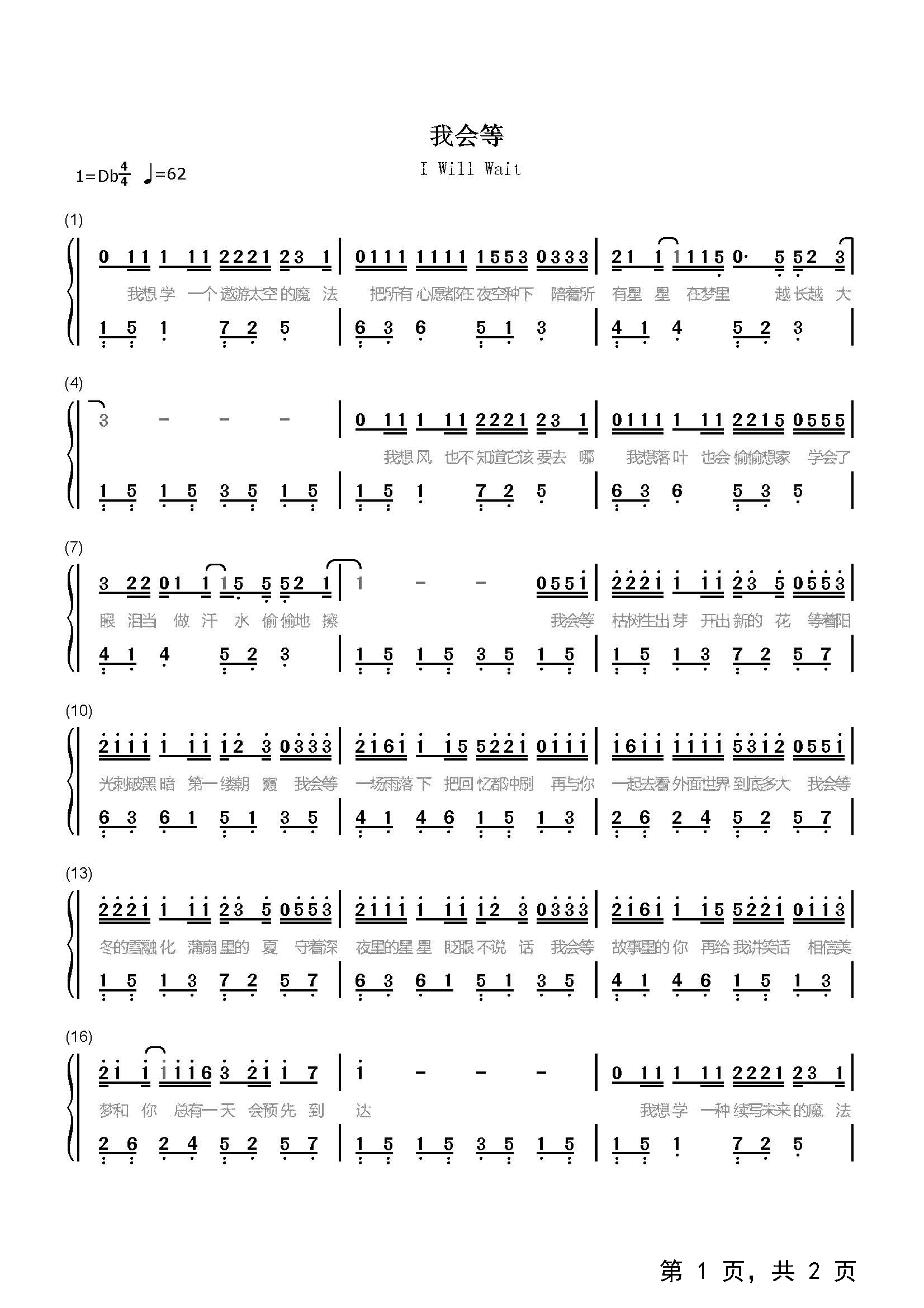 作品分类:流行钢琴简谱