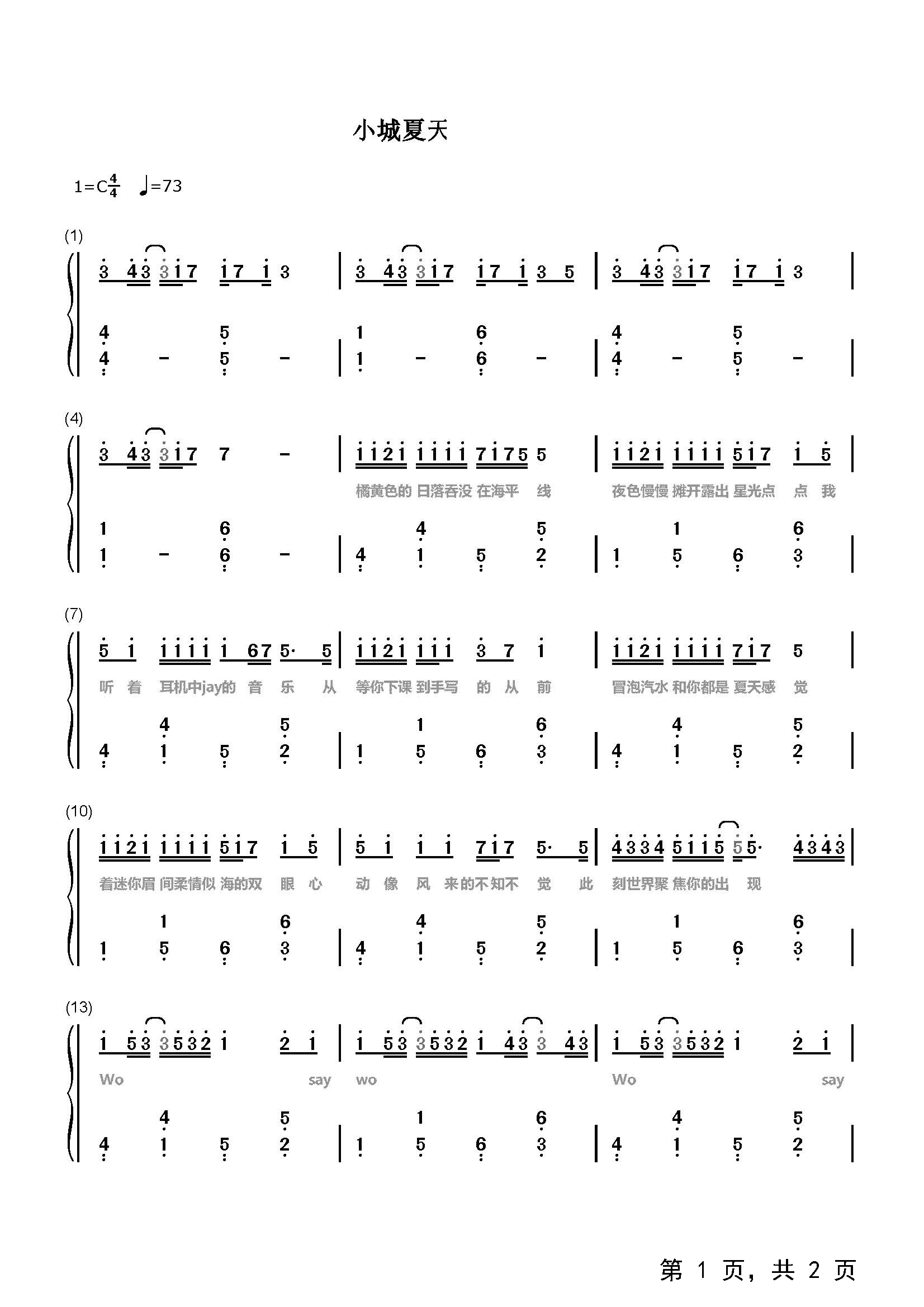 作品分类:流行钢琴简谱