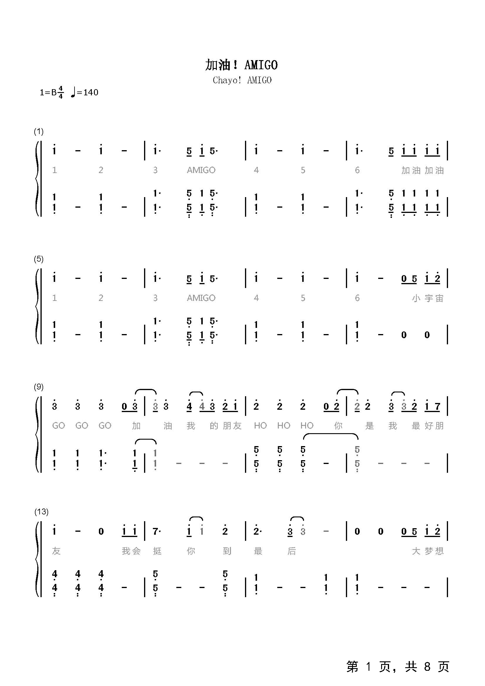 作品曲调:B调