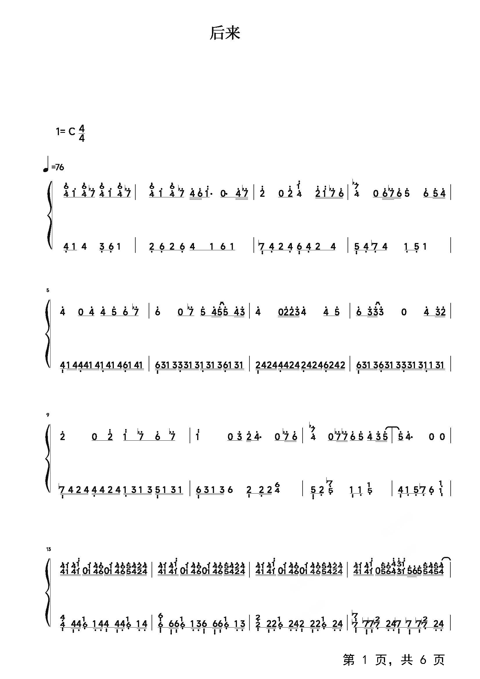 作品分类:流行钢琴简谱