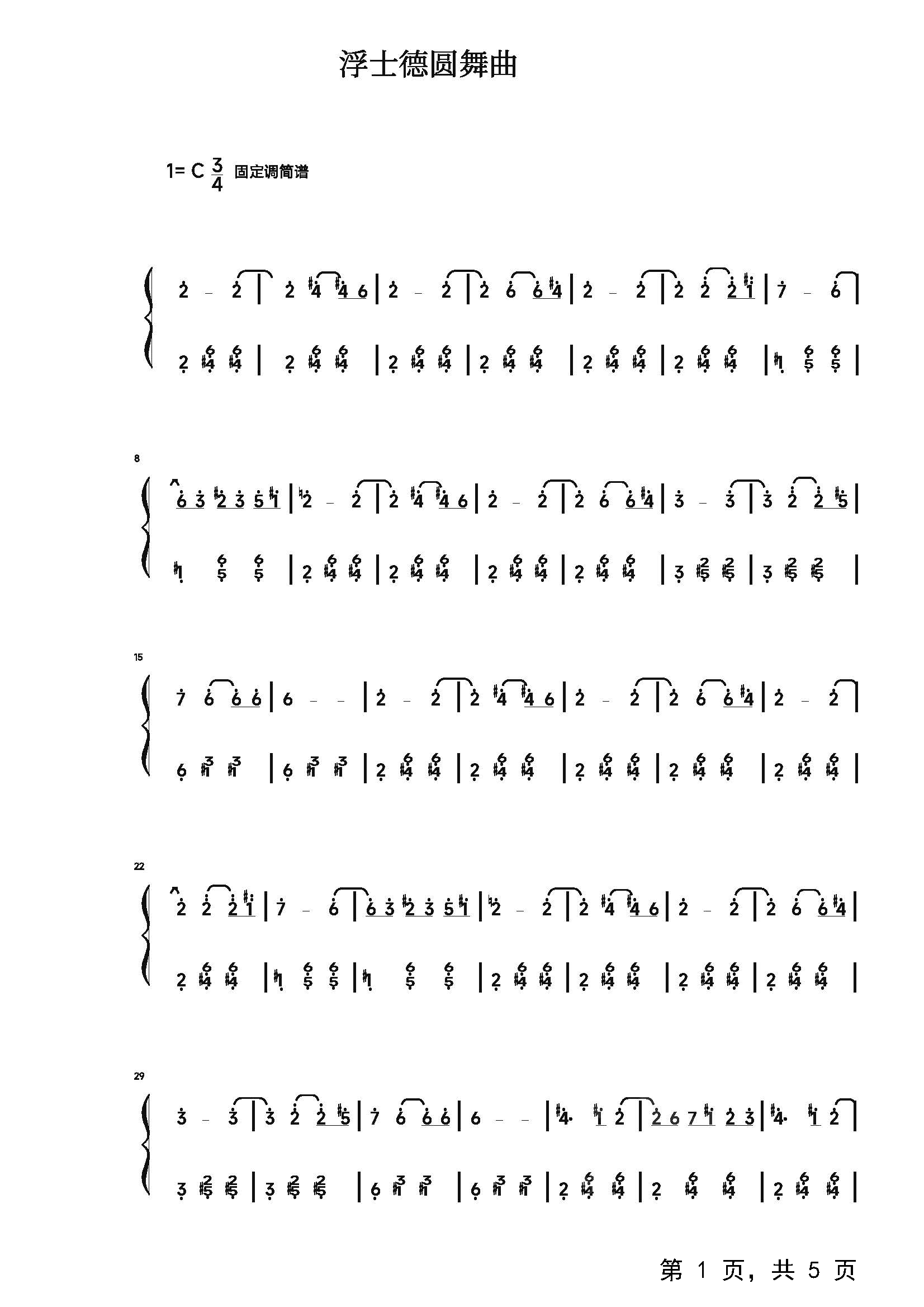 作品分类:流行钢琴简谱