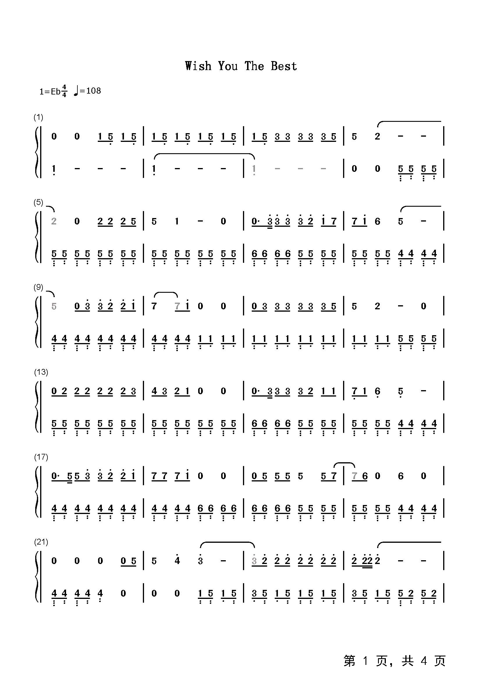 作品分类:流行钢琴简谱