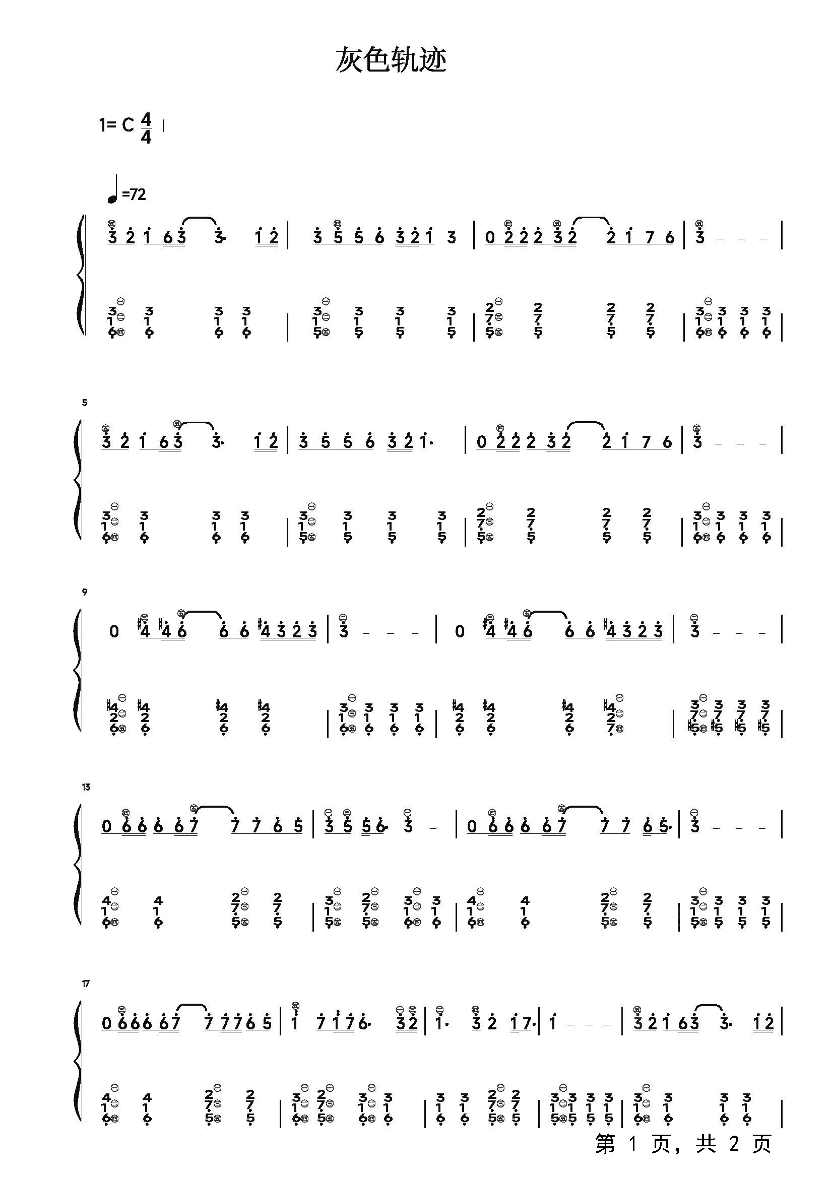 作品分类:流行钢琴简谱