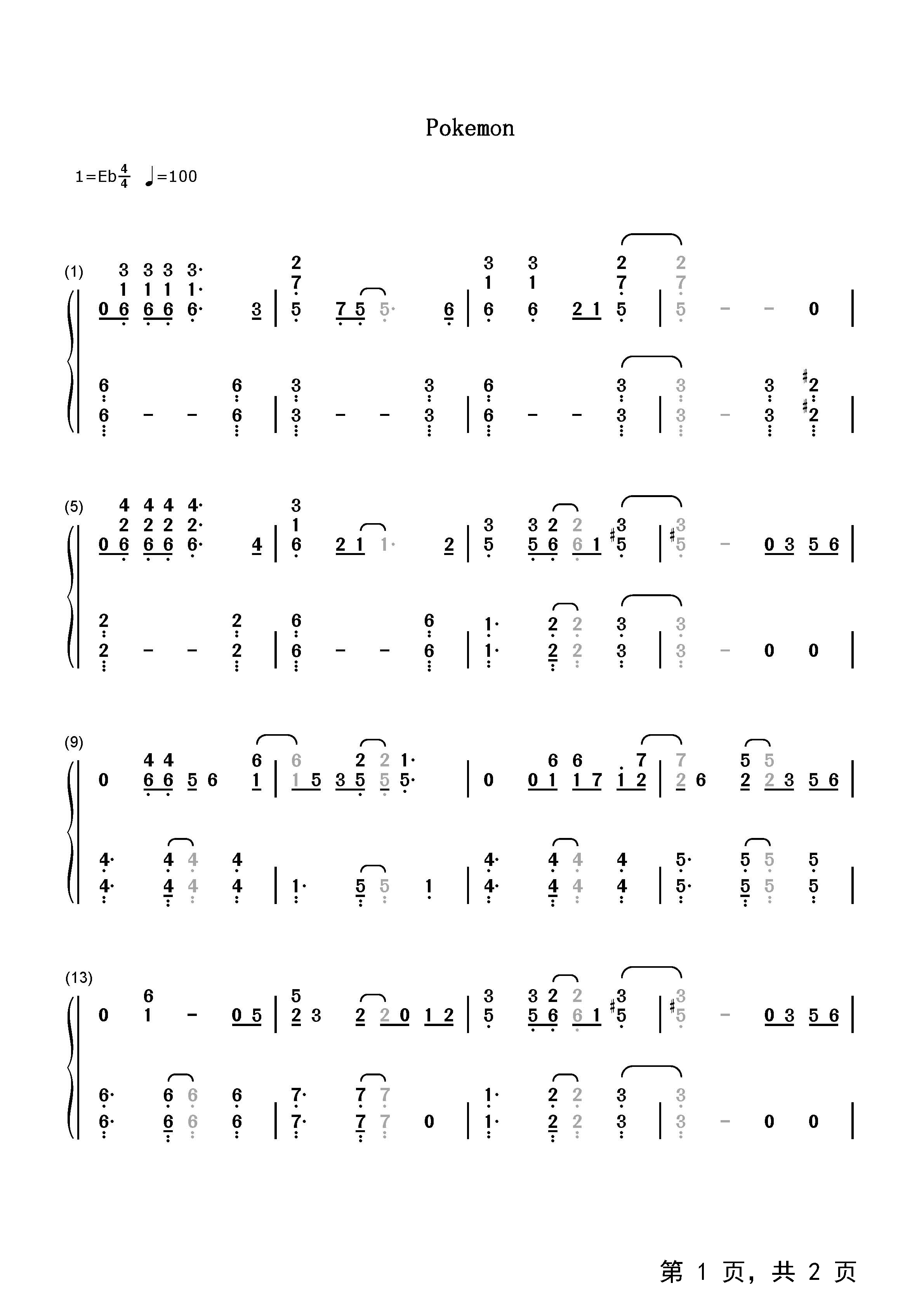 作品分类:流行钢琴简谱