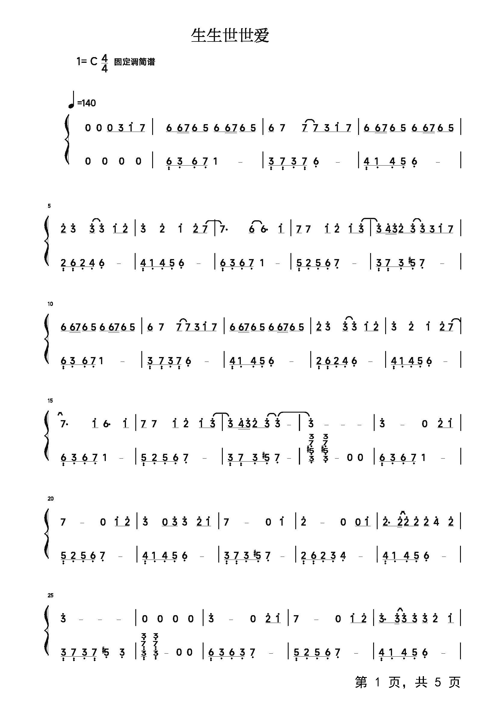 作品分类:流行钢琴简谱