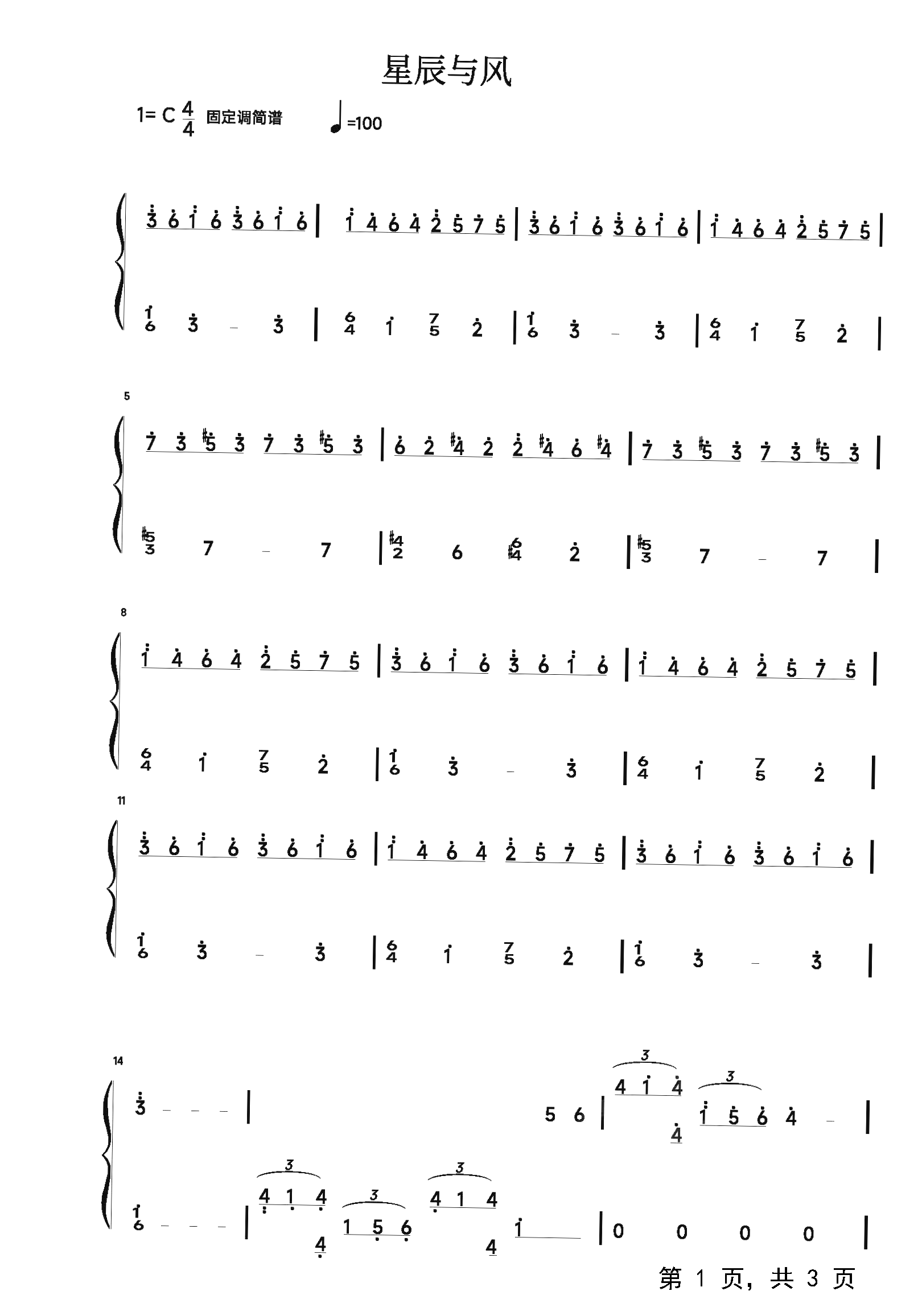 作品曲调:C调