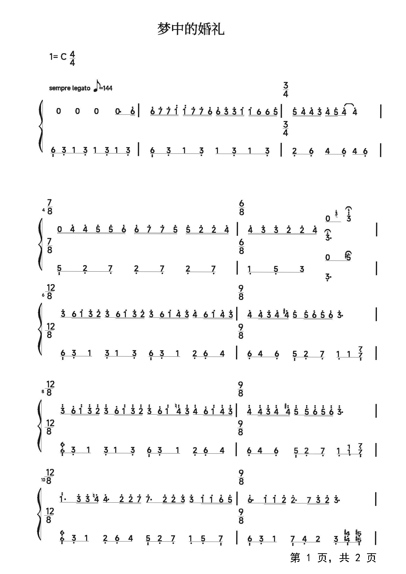 作品分类:流行钢琴简谱