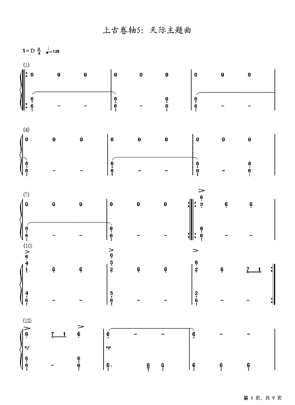 上古卷轴5:天际主题曲双手简谱和五线谱完全对应,是EOP教学曲。
