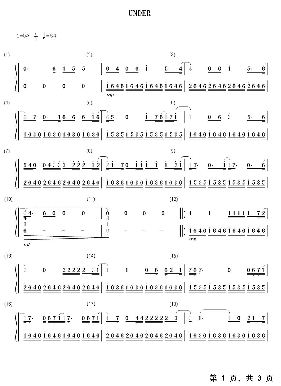 作品分类:流行钢琴简谱