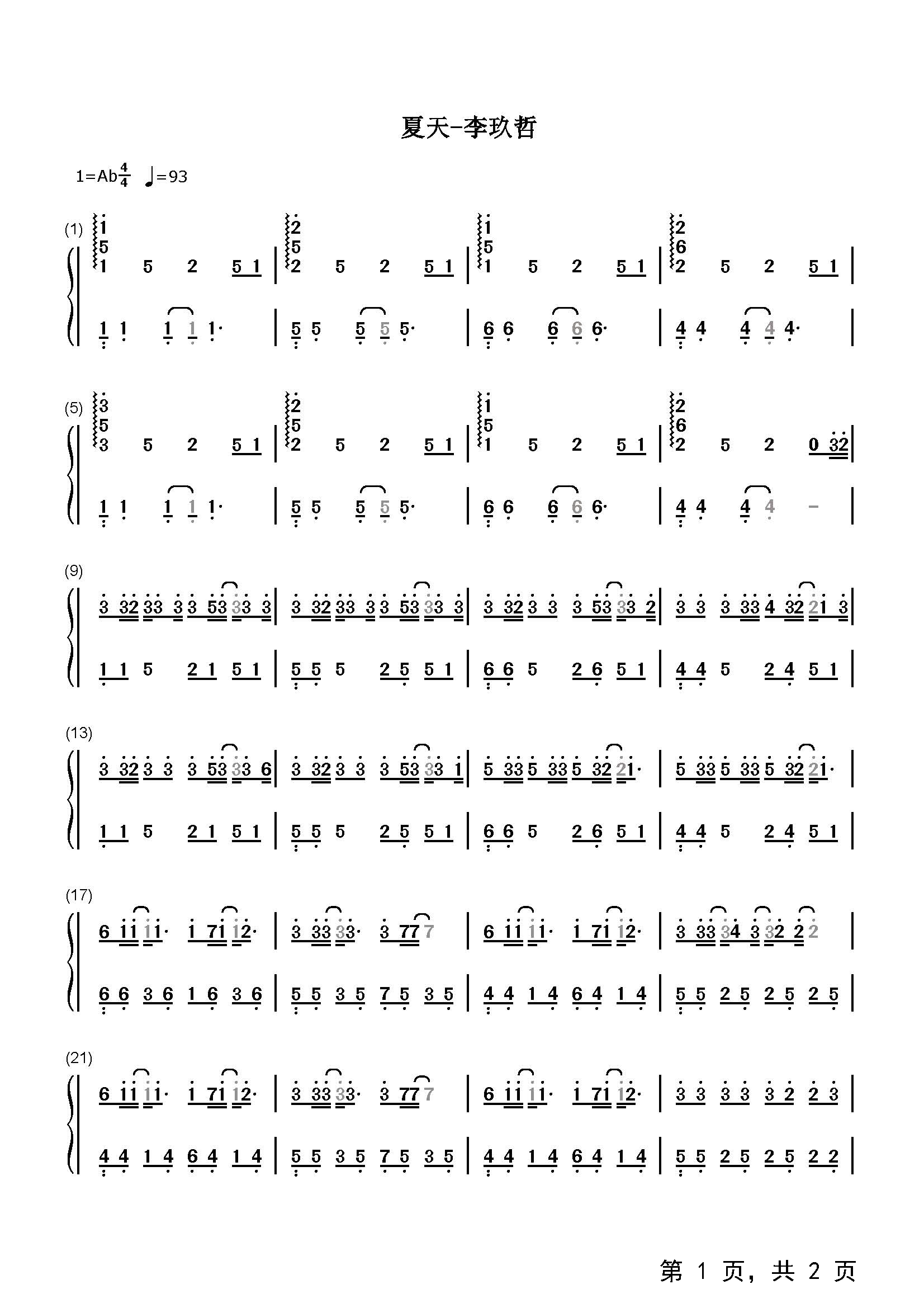 作品分类:流行钢琴简谱