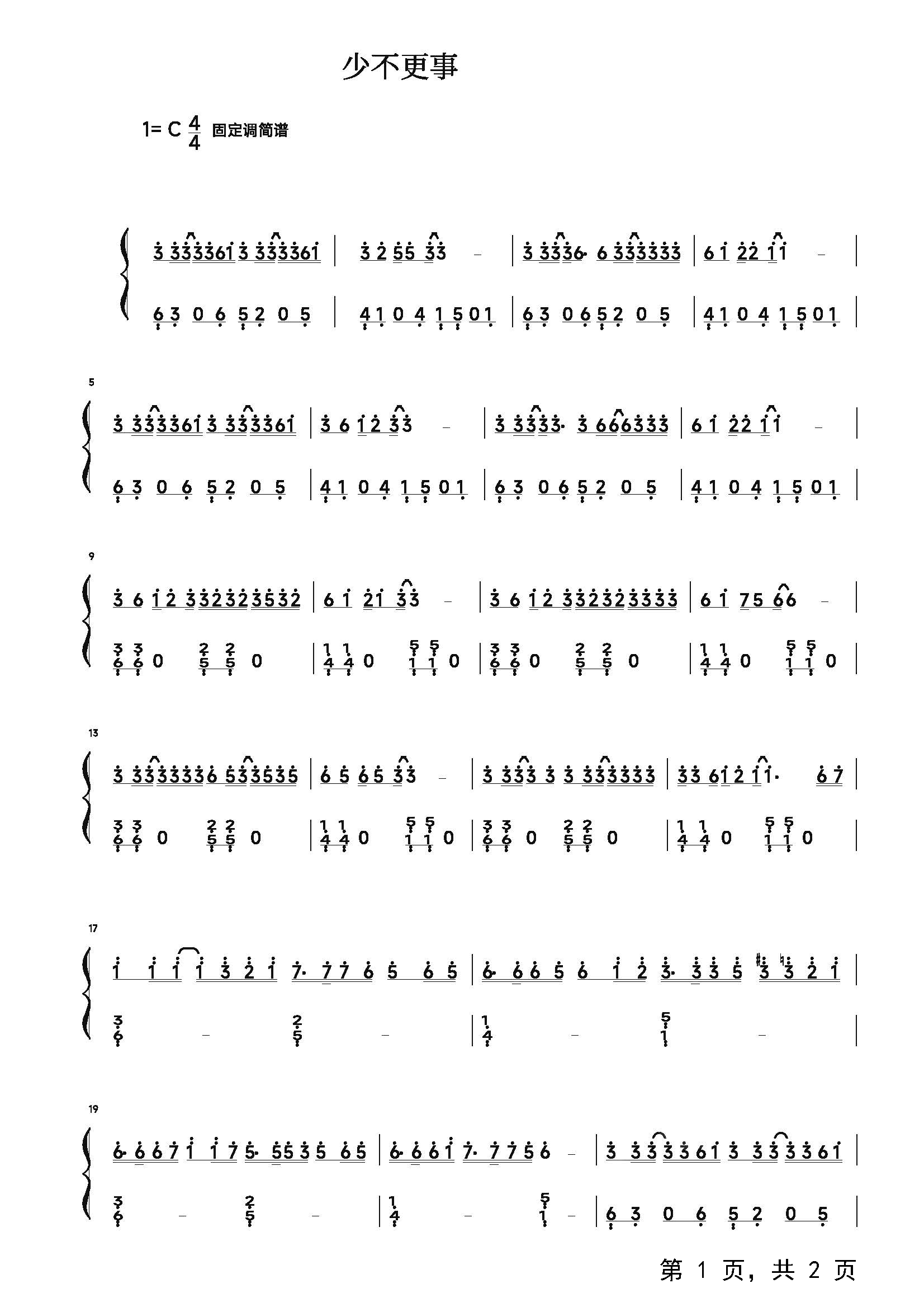 作品分类:流行钢琴简谱