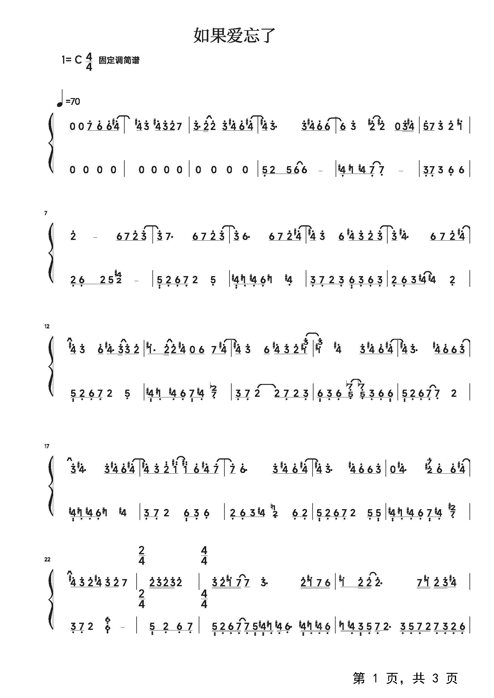 作品分类:流行钢琴简谱