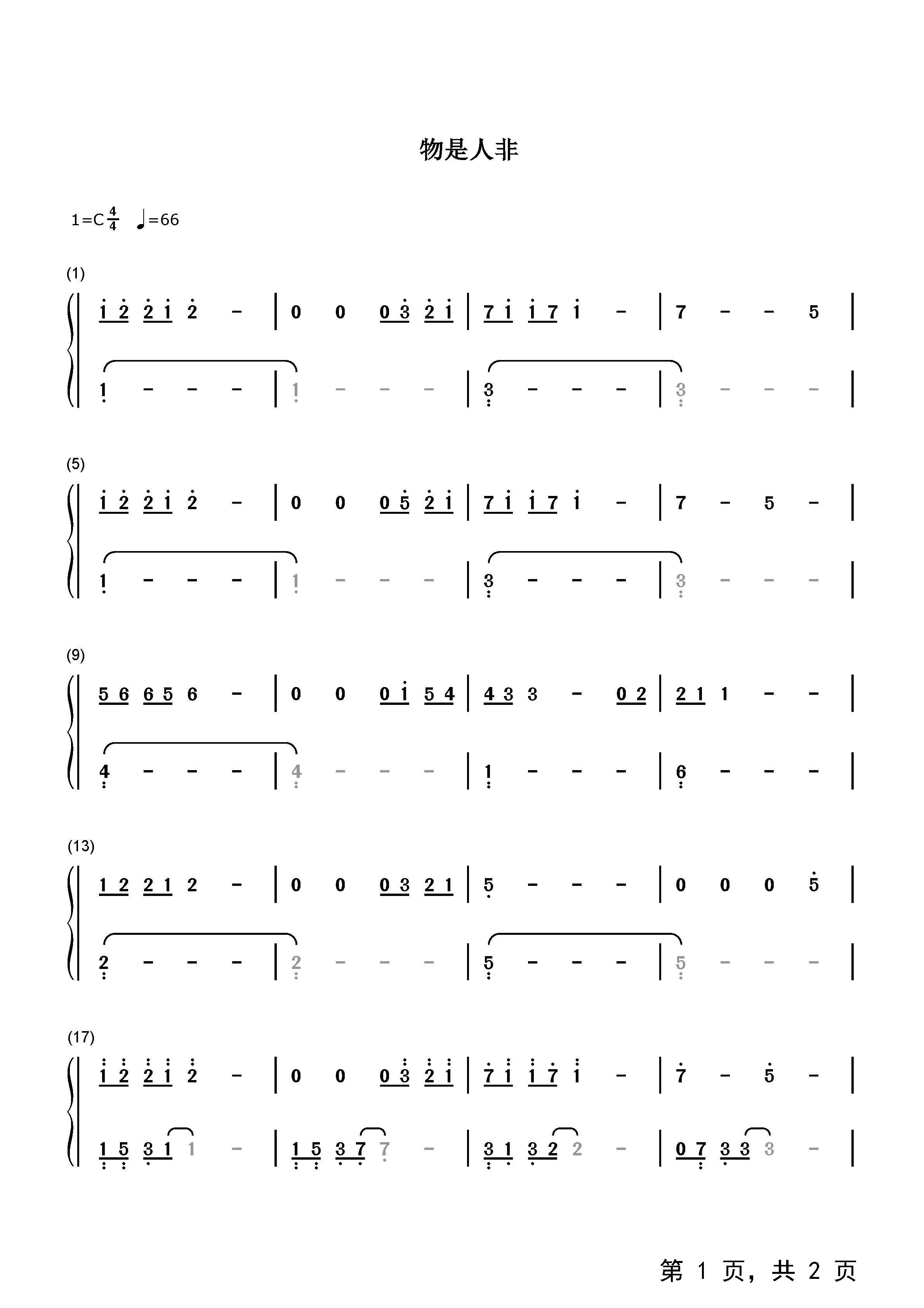 作品分类:流行钢琴简谱
