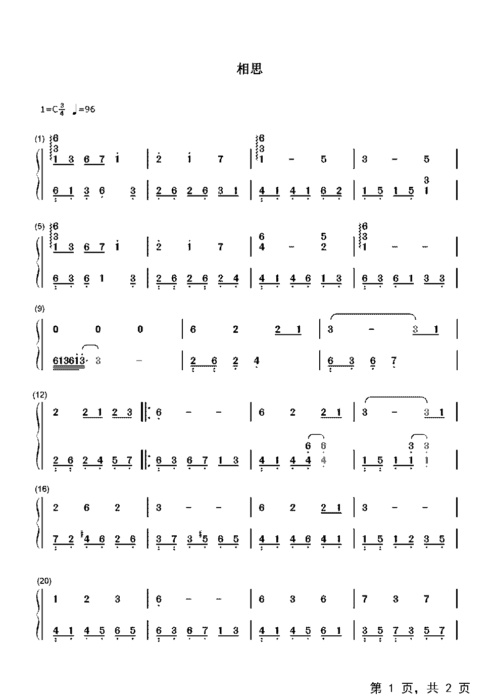 作品分类:流行钢琴简谱