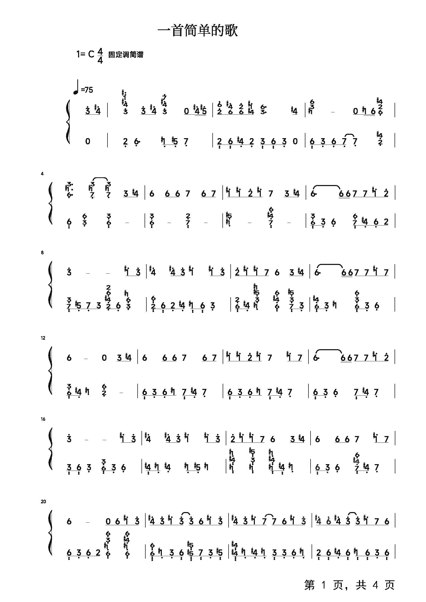 作品分类:流行钢琴简谱