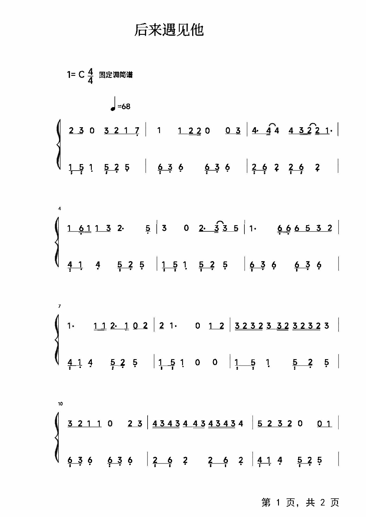 作品分类:流行钢琴简谱